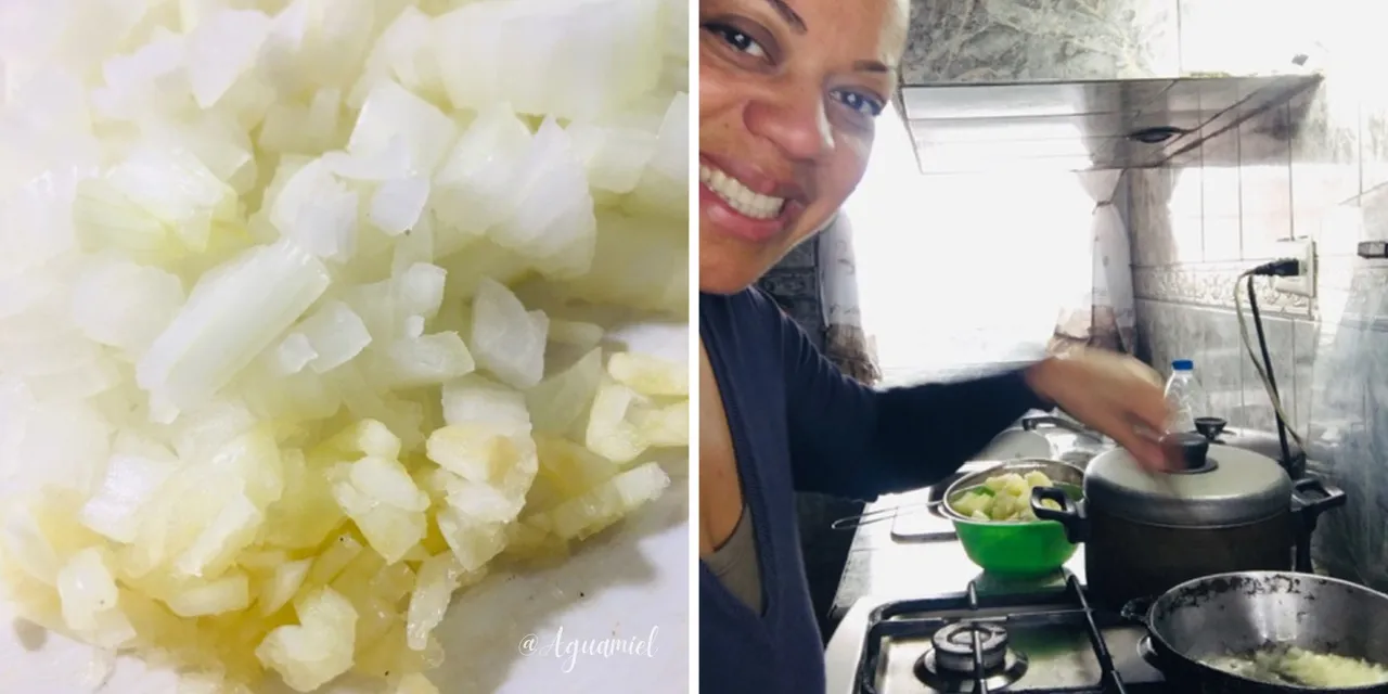 Cortamos la cebolla y el ajo, en una caldero caliente agregamos aceite de olivo sofreímos.