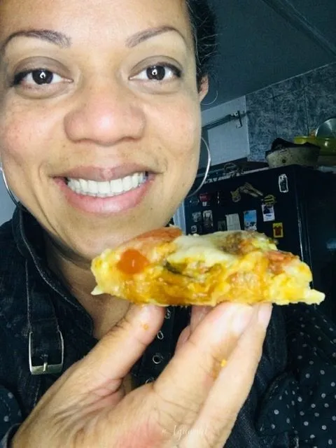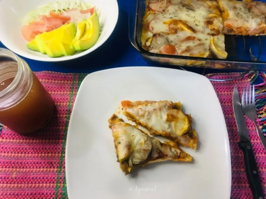 I remembered that in previous days I wanted to enjoy a pizza -the subconscious- so I gave free rein to creativity and set in motion this preparation with a different dough - of cassava (manioc), a ratatouille taught by a great friend cook and a simply wonderful melted potato cheese.
