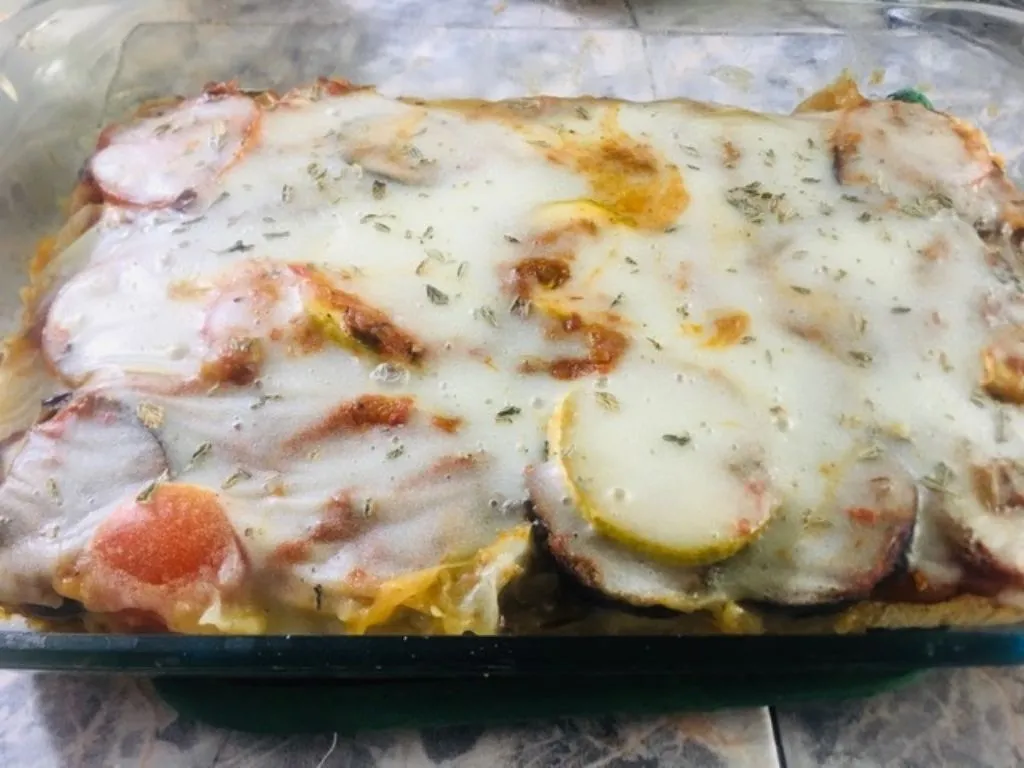 Luego cubrimos con el queso fundido de papa sobre los vegetales, y lo llevamos al horno por un tiempo de 15 minutos. Coloqué un poco de orégano.