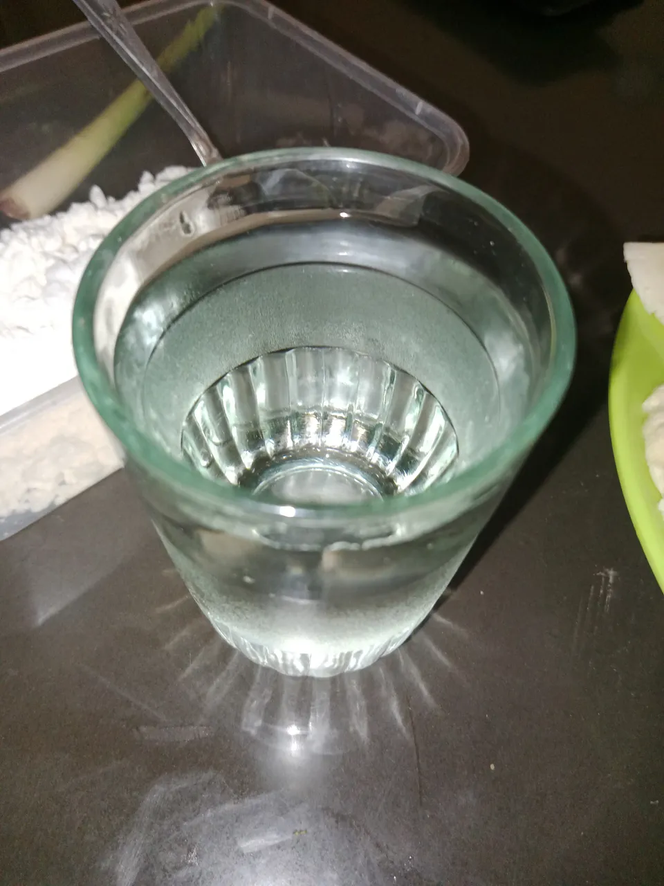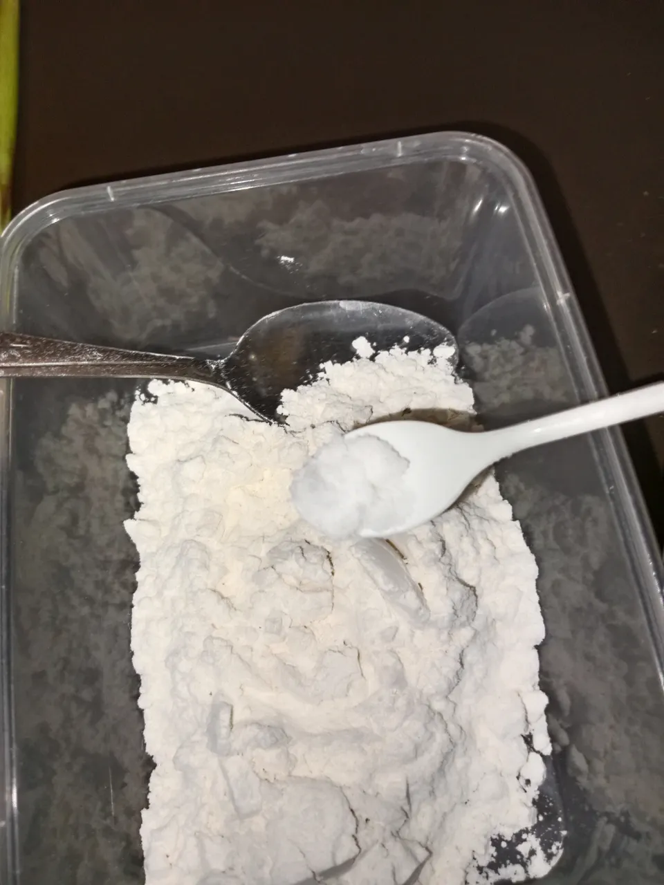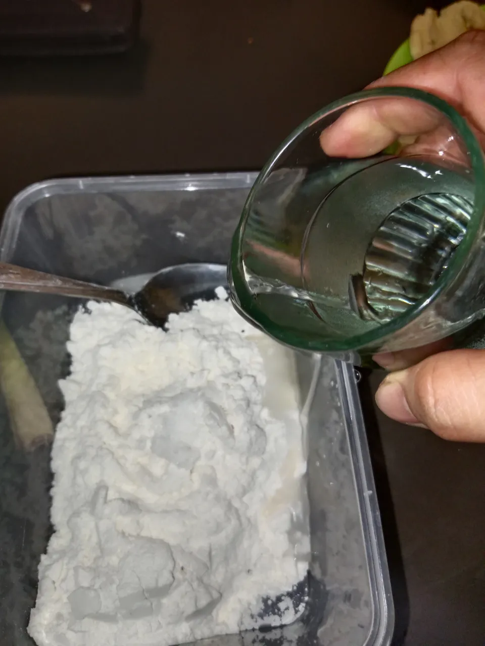 After all the bananas are flattened, prepare the flour, salt and water... stir until there are no lumps in the flour