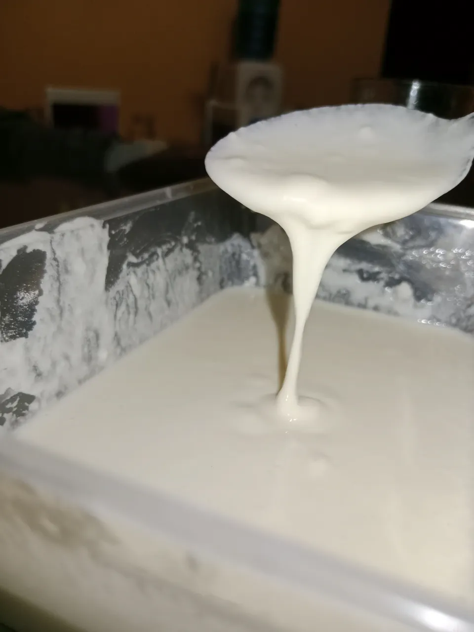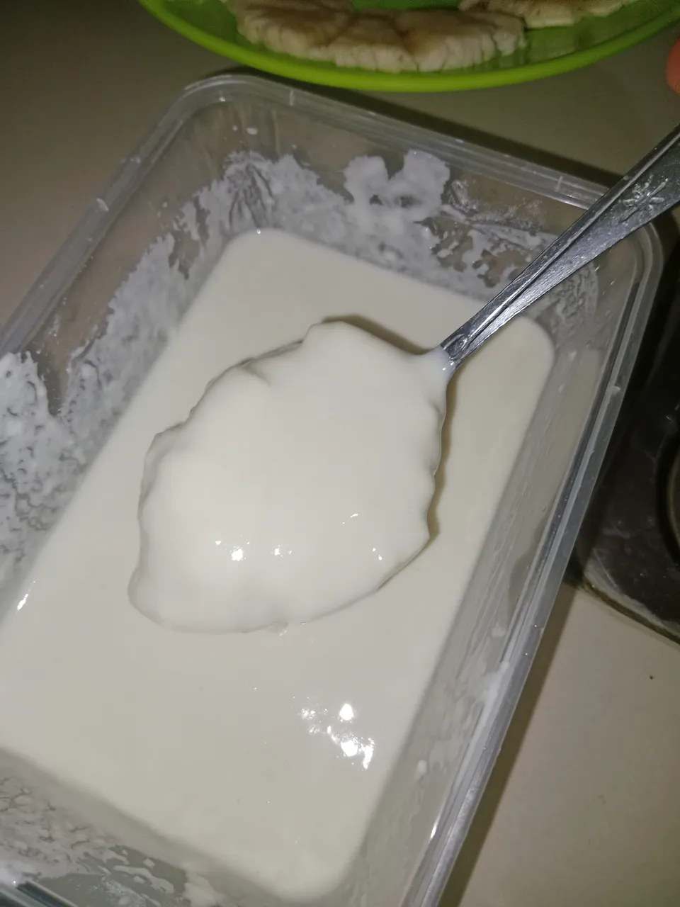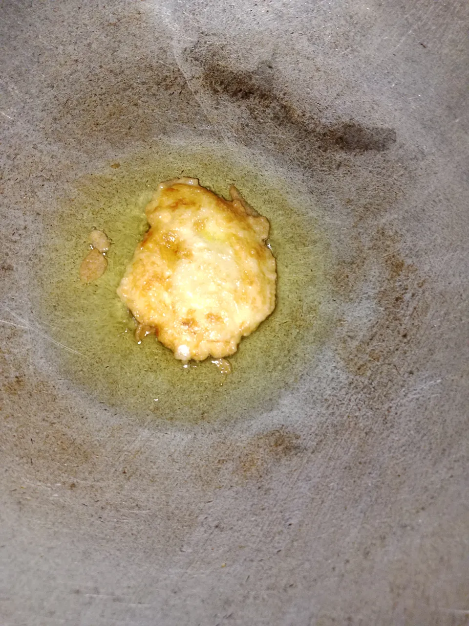 After all the bananas are flattened, prepare the flour, salt and water... stir until there are no lumps in the flour