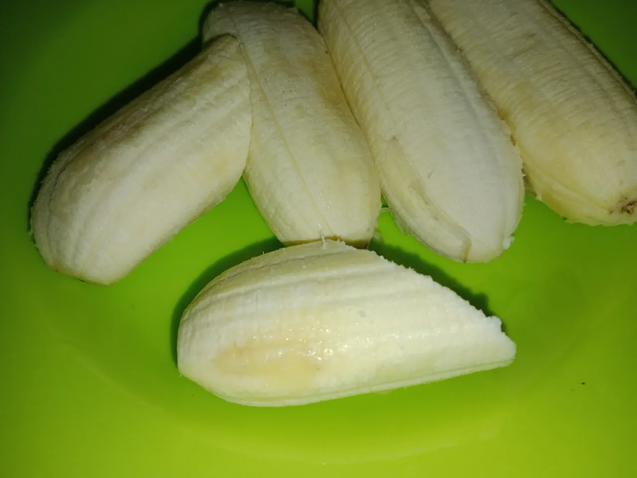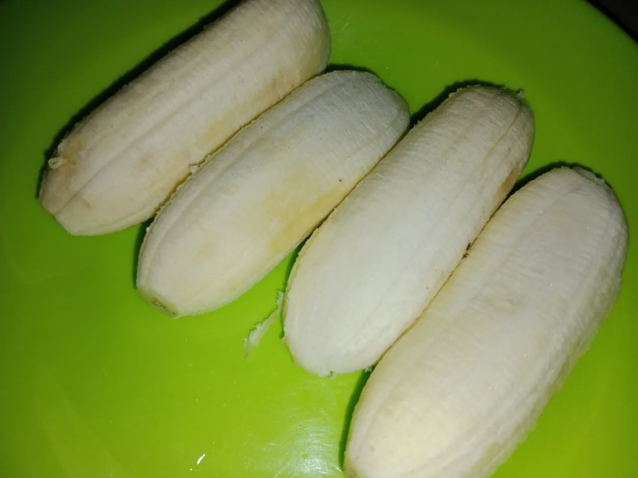 First, peel the banana and cut it into 2 parts. I cut it at a slight angle.