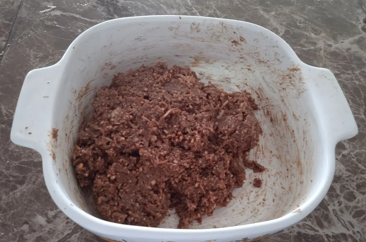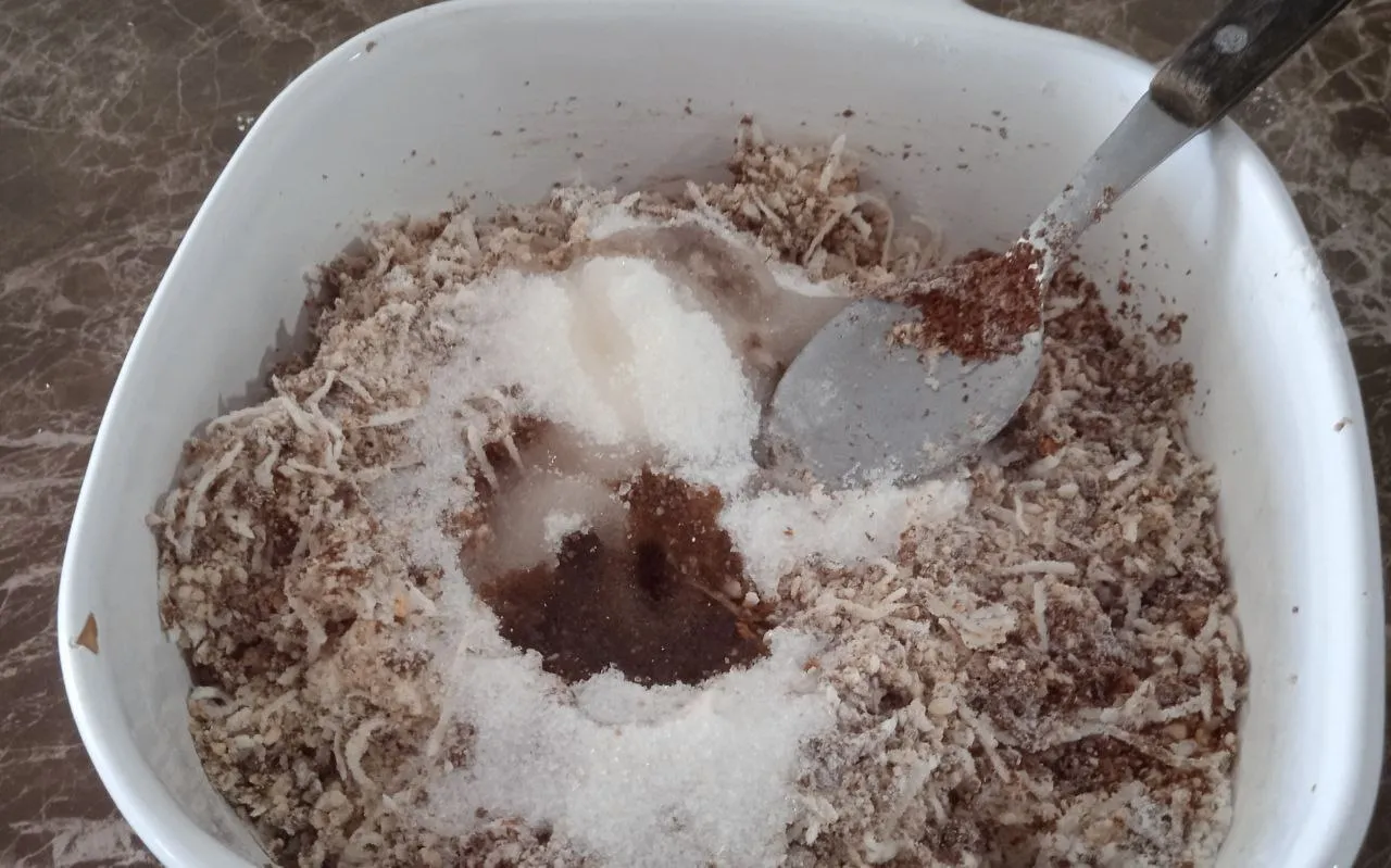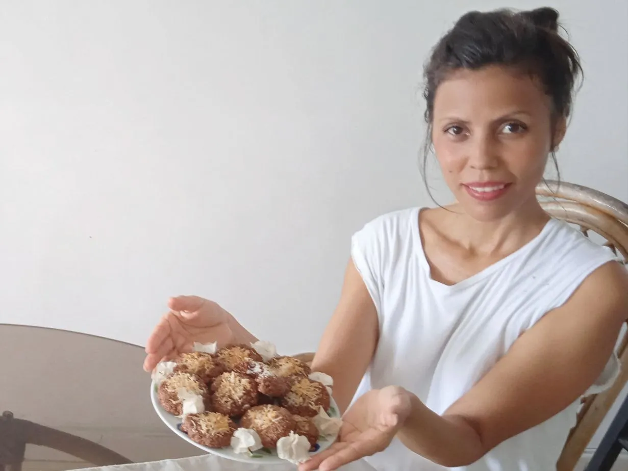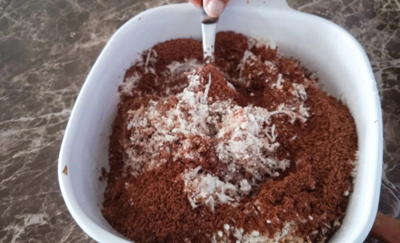 Then add the Coconut Milk, little by little, mixing with a spoon, until our dough has the desired texture, in my case I took it with my hand, I made a ball and I saw that I could do it easily, there I realized that the dough was ready.