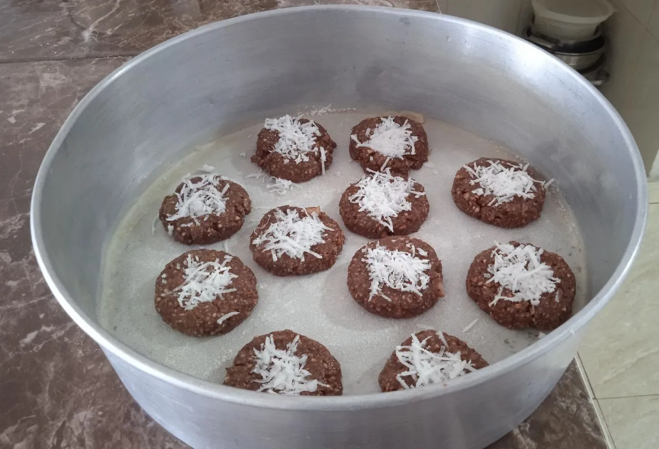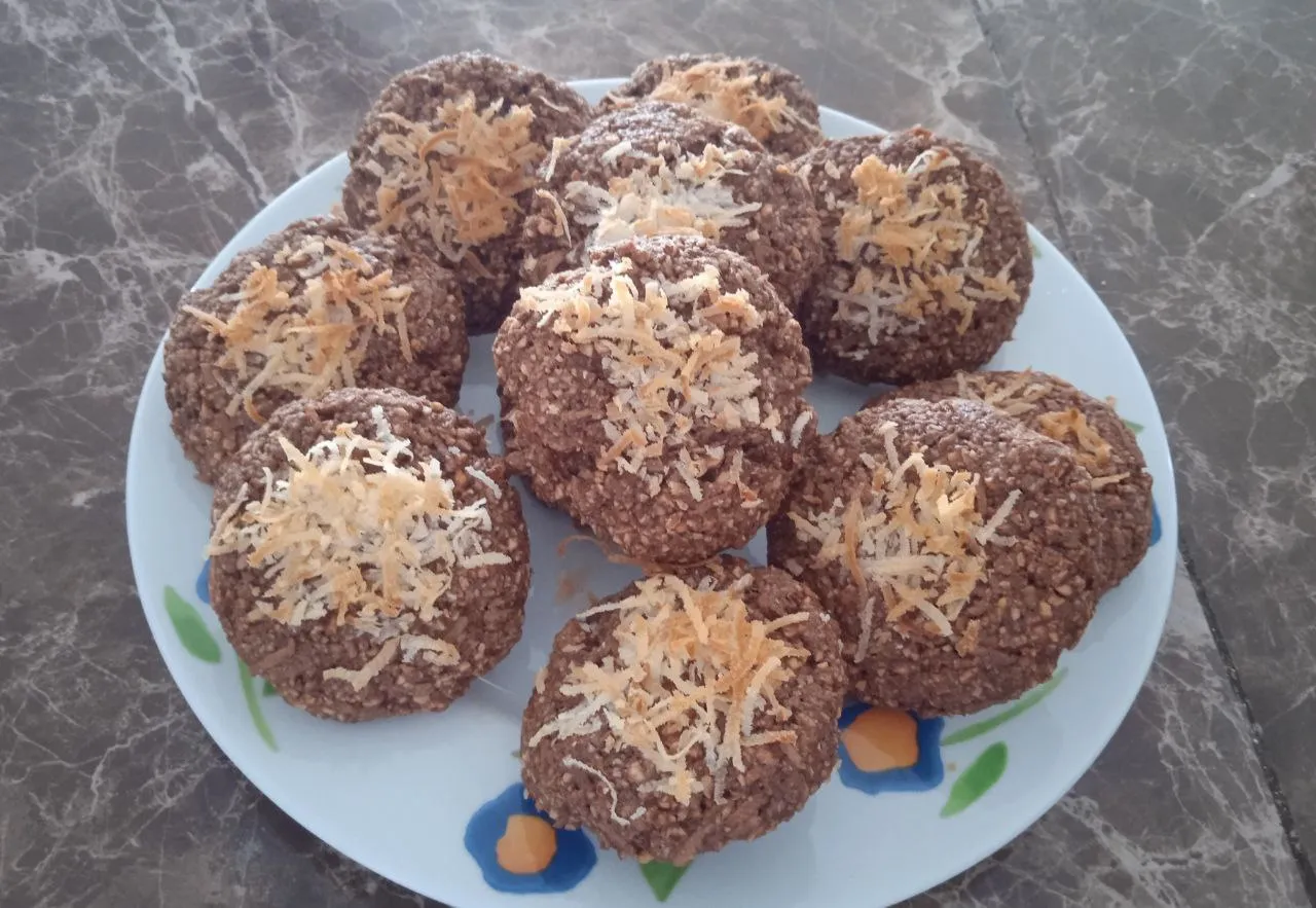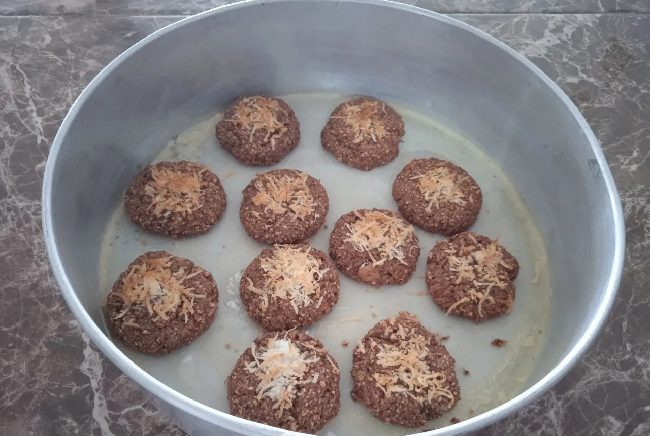 On a floured tray I put my cookies and then decorate them with the grated coconut, pressing a little, so that the coconut sticks to the cookies.