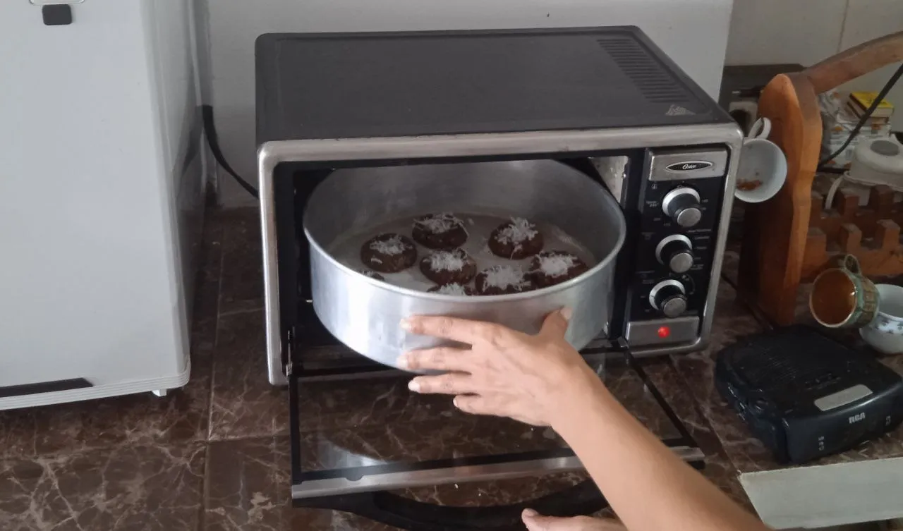 Verificamos que nuestras galletitas estén doraditas, podemos notar que el Coco queda dorado, más no quemado.
