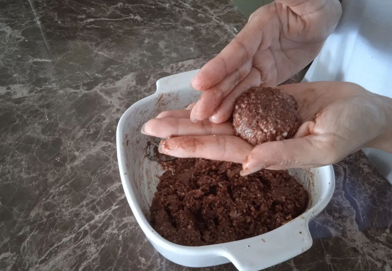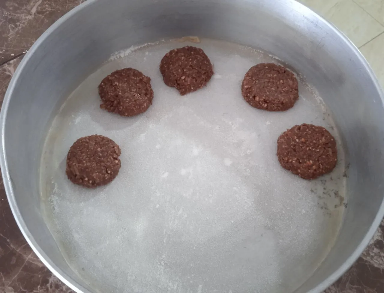 Then I take a spoon with that I measure the size of the cookies and with my hands I give it a rounded shape.