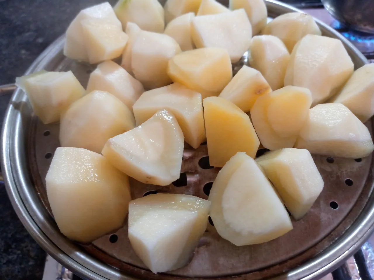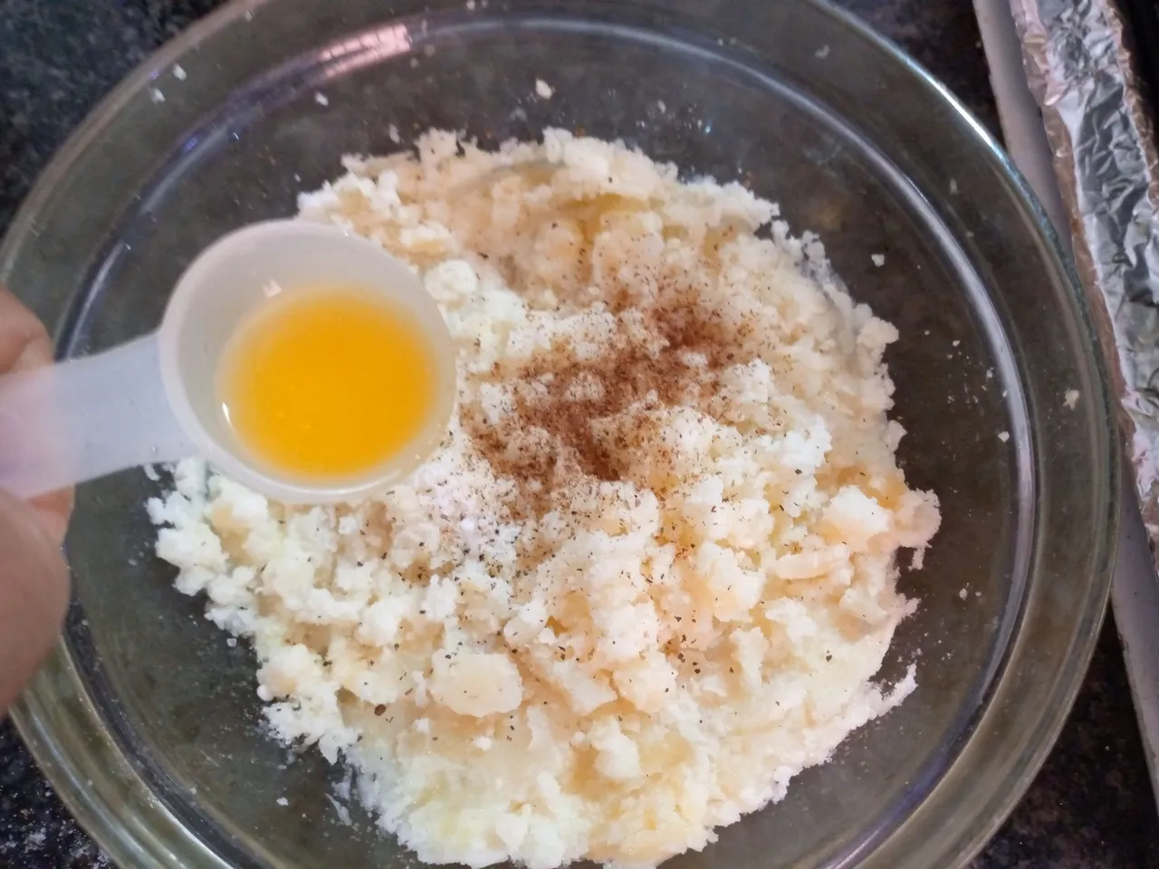 The first step to prepare this is to wash, peel and cut into cubes the potatoes and cook it steamed, you can also boil it to soften and with the help of a masher or fork crush it add salt, pepper, nutmeg and a splash of olive oil mix if you prefer you can add a little vegetable milk to soften it.