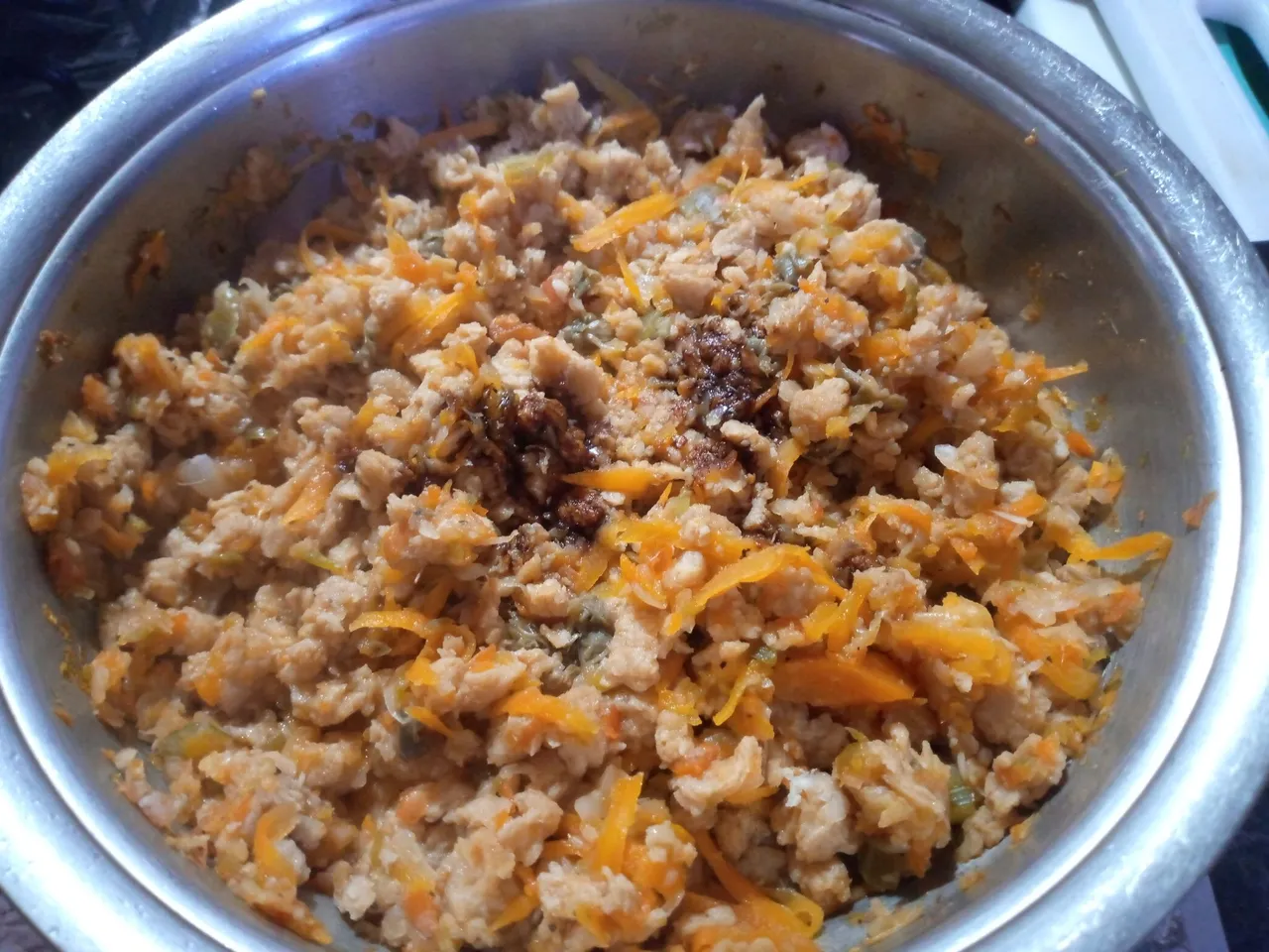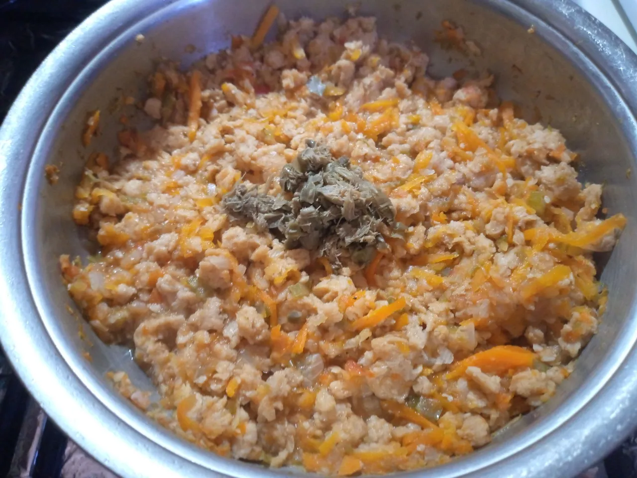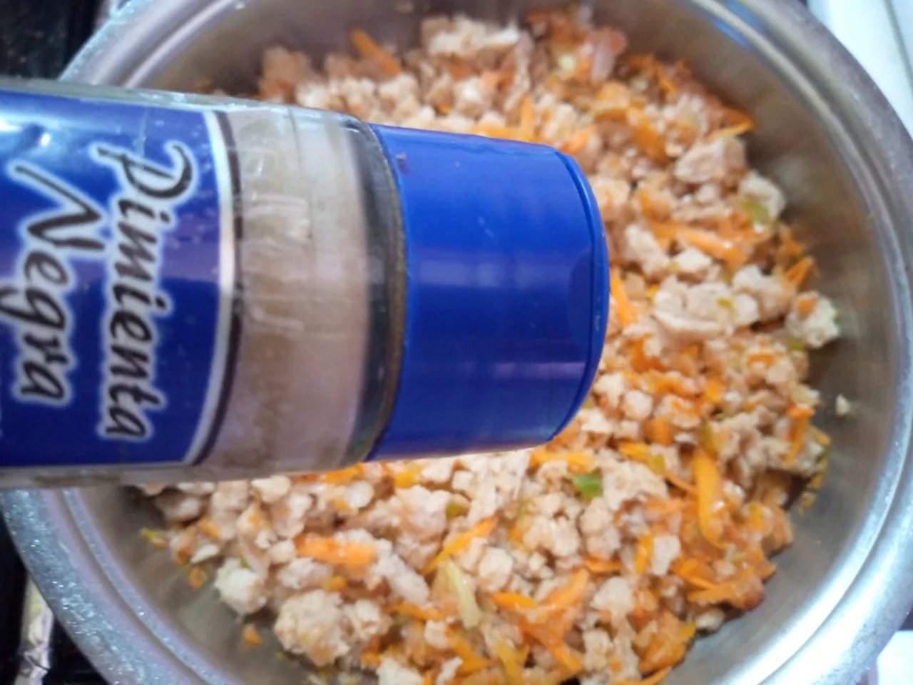 Le agregamos las carne de soya mezclamos y le añadimos sal, pimienta, comino mezclamos y cocinamos por unos minutos le añadimos alcaparras y salsa de soya removemos y cocinamos por 3 minutos más para que agarre el sabor ya listo retiramos del fuego.