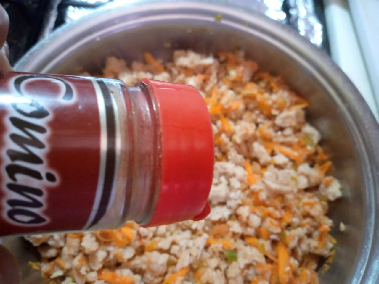 Add the soy meat, mix and add salt, pepper, cumin, mix and cook for a few minutes, add capers and soy sauce, stir and cook for 3 more minutes to get the flavor, then remove from heat.