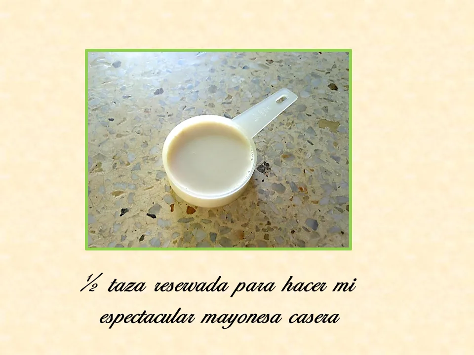 He reservado 1/2 taza para hacer la mayonesa que utilizamos en casa para las ensaladas.