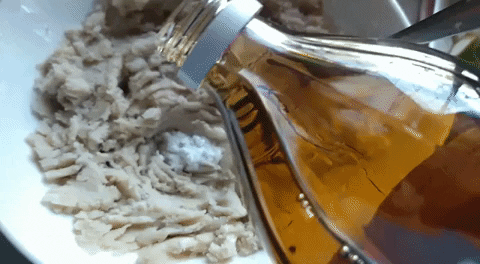 With the help of a fork, mash the cooked topochos. It will be very easy to achieve a homogeneous dough, but I don't worry if there are little pieces left; I like it better this way.