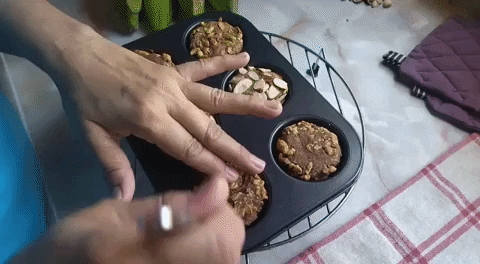 They are soft muffins prepared with a cooked dough and nuts. You can say they are energy muffins, ideal to go with your coffee for breakfast on a busy day.