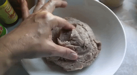 Sometimes, like in this case, when the dough is dense and I'm not using any yeast, I like to add a little vinegar and baking soda to give it a little air.