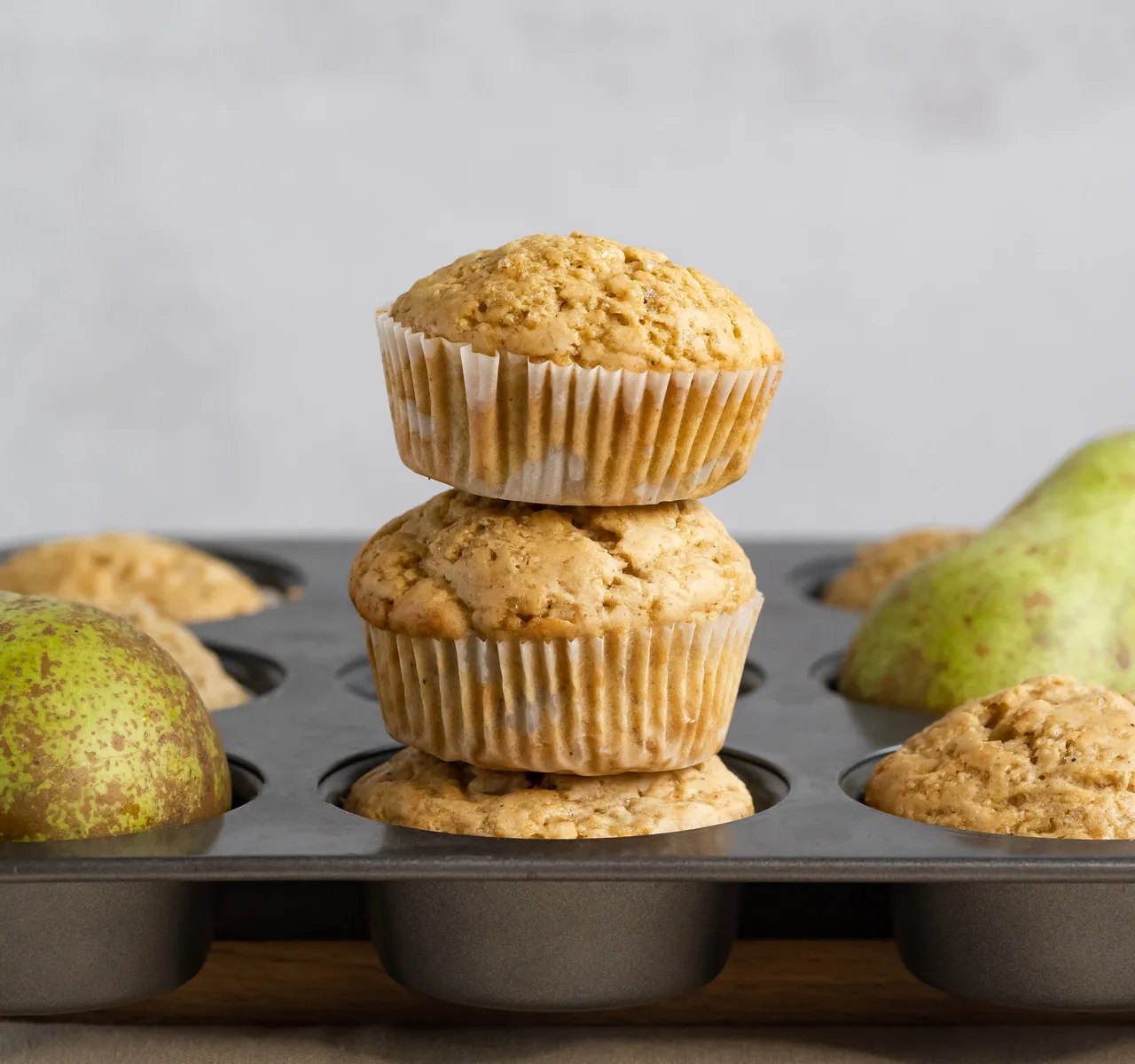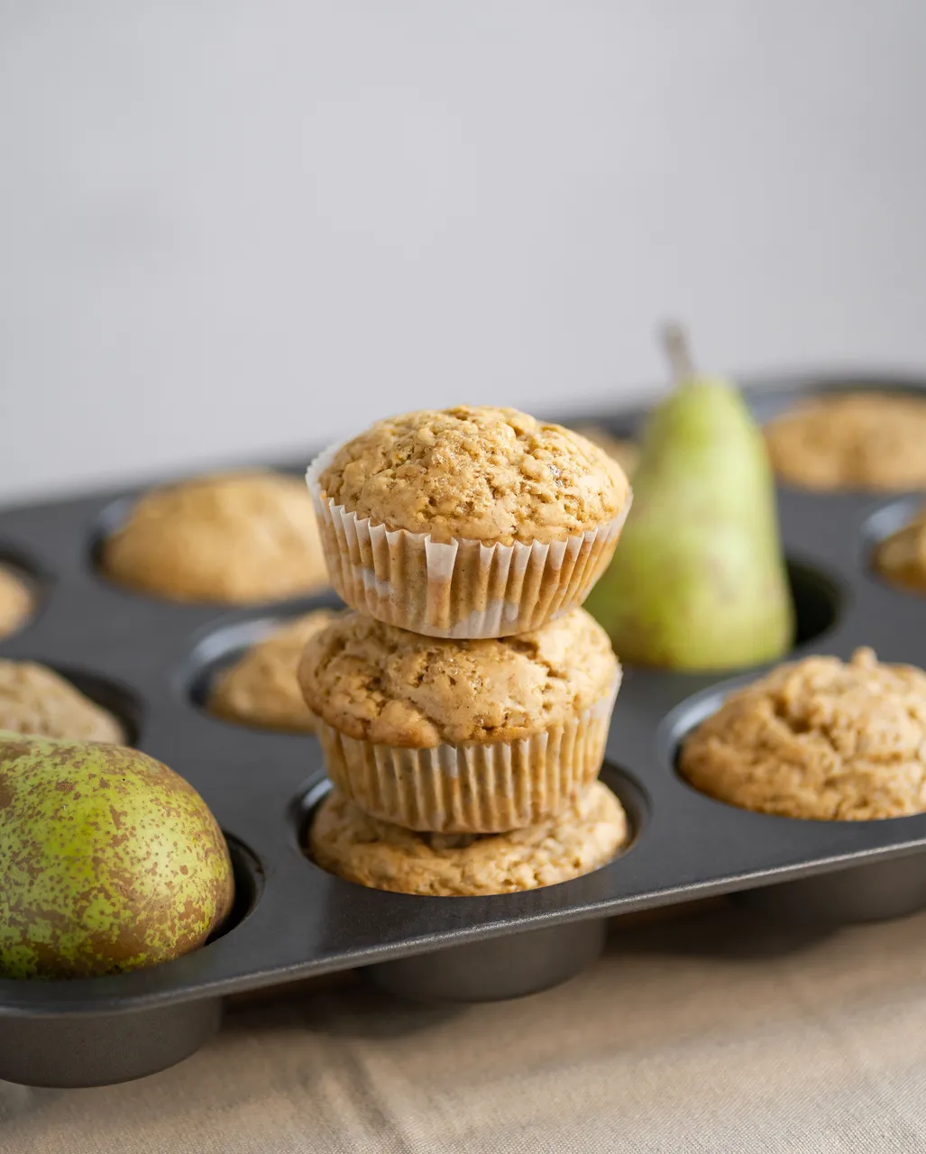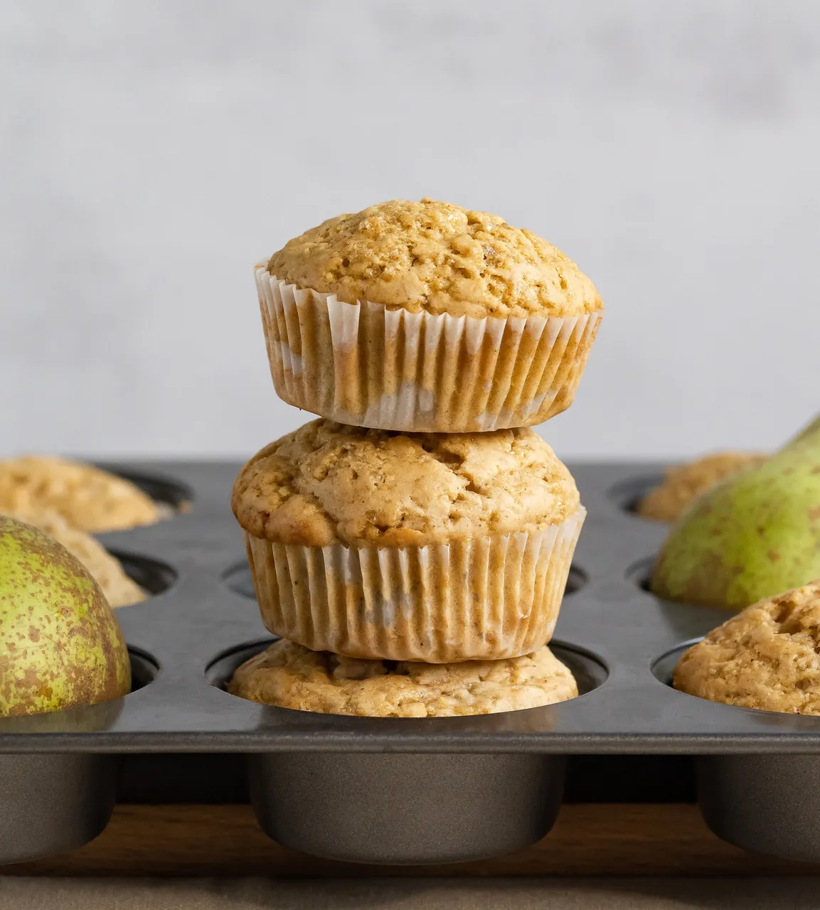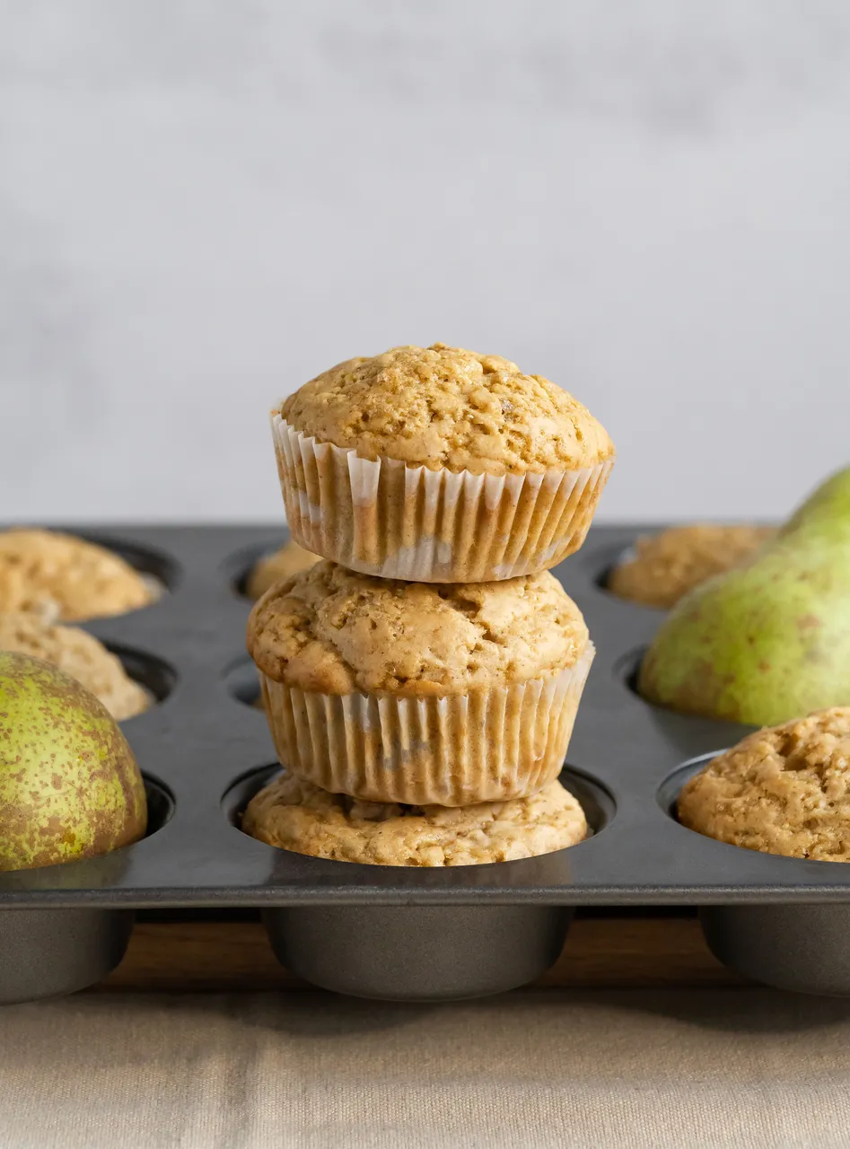 In this recipe, I included pear in the muffins. The sweet and slightly tart notes of pear work in perfect harmony with the warm spices I've included. The result is a muffin that's not only delicious but also reminiscent of cozy autumn days.