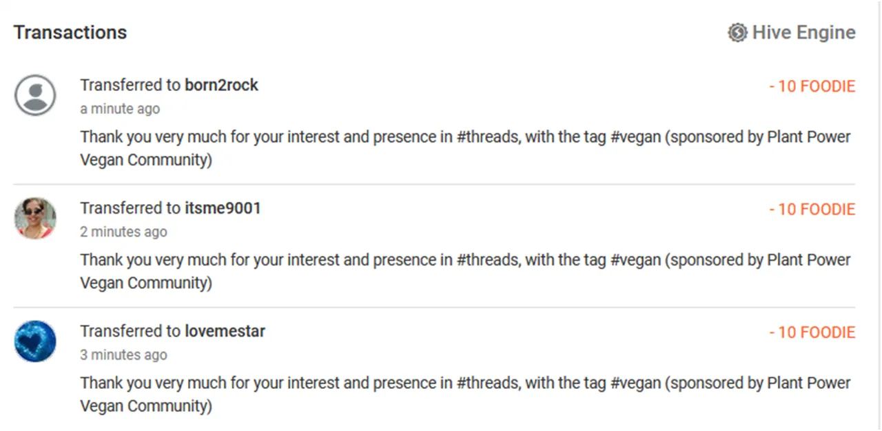 If you have interacted on the LeoFinace platform doing the #threads, you may have noticed that we frequently vote for #threads that have the #vegan tag, and we do this with our curator account @veganlove. Sometimes it takes us a day or two to vote for them, but we always try to recognize your interest in doing these microblogging. Every time we vote, you win in $leo tokens, we will also be recognizing the three most active users on said platform on a weekly basis, giving them a gift of 1 $leo (sponsored by Team @leofinance) for each one. This week the most active are: @virgilio07 @lovemelange @jenthoughts; and 10 $foodie token (sponsored by Plant Power Vegan Community) to @lovemestar @itsme9001 @born2rock Thank you very much for your interest and presence in #threads, with the #vegan tag