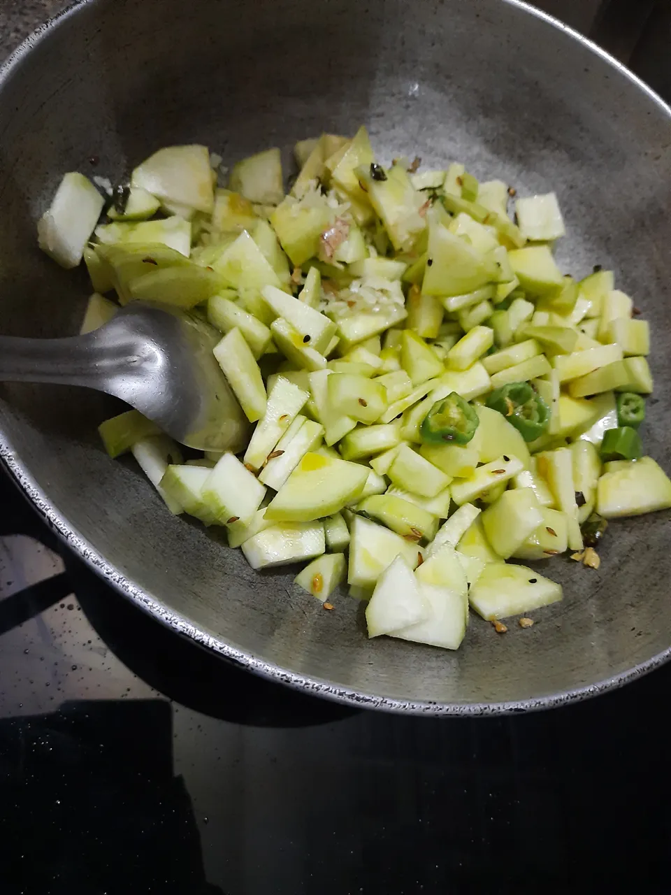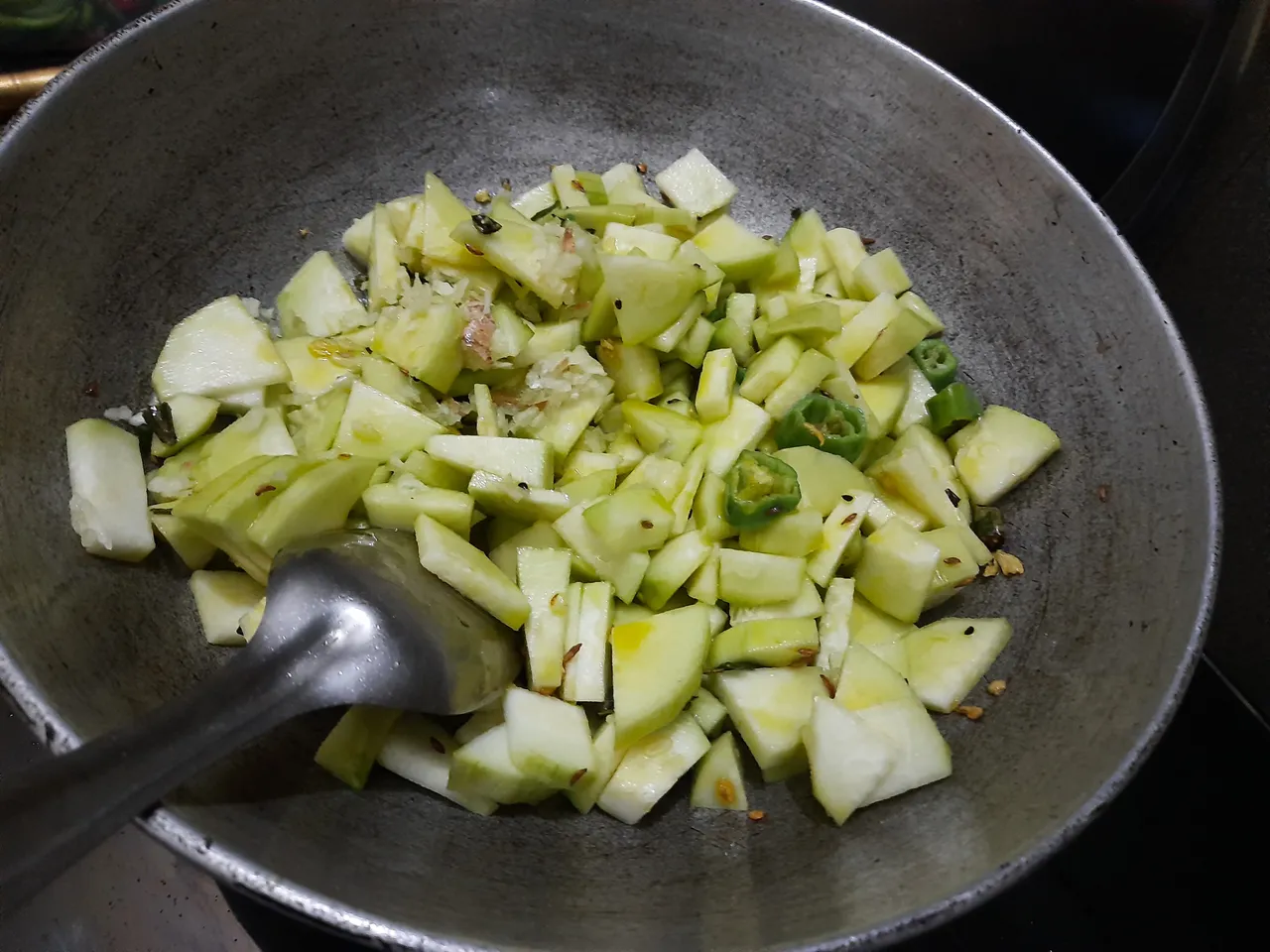 Today I came with a new recipe of Loya. It is a green vegetable and mostly found in Rajasthan. In summer time every ones house this loya vegetable is very common in village of rajasthan. Most people in farms grow this veggie and have it. It looks like small bottle gourd but have some black spots and taste is also similar to it.