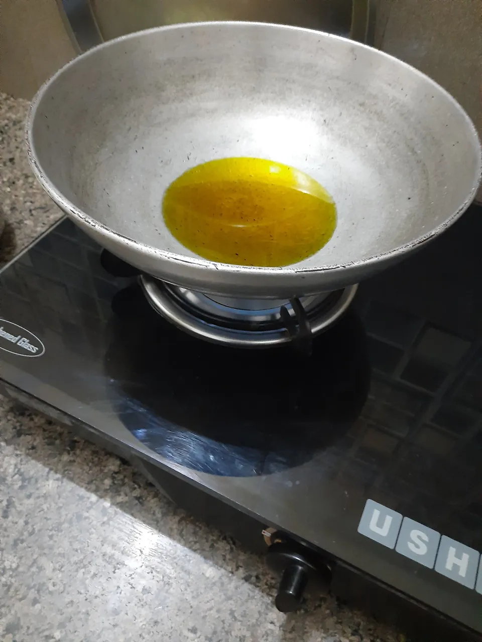 5.heat oil in a pan.