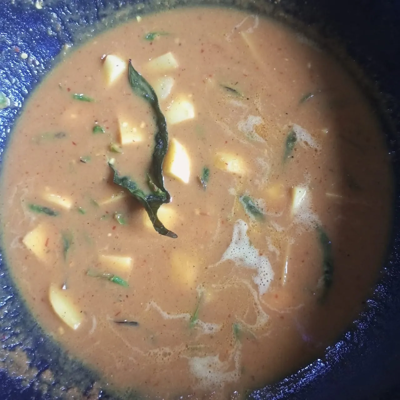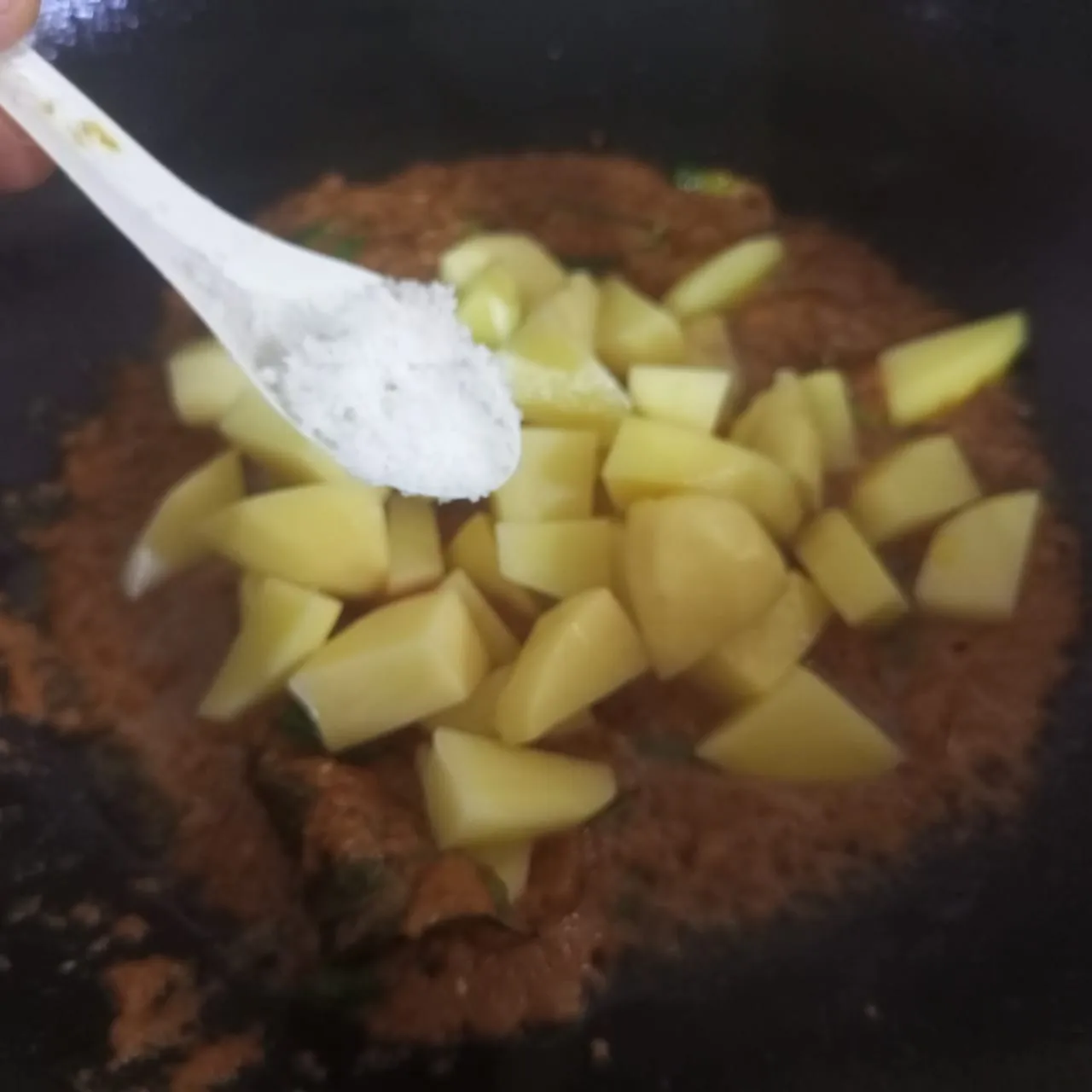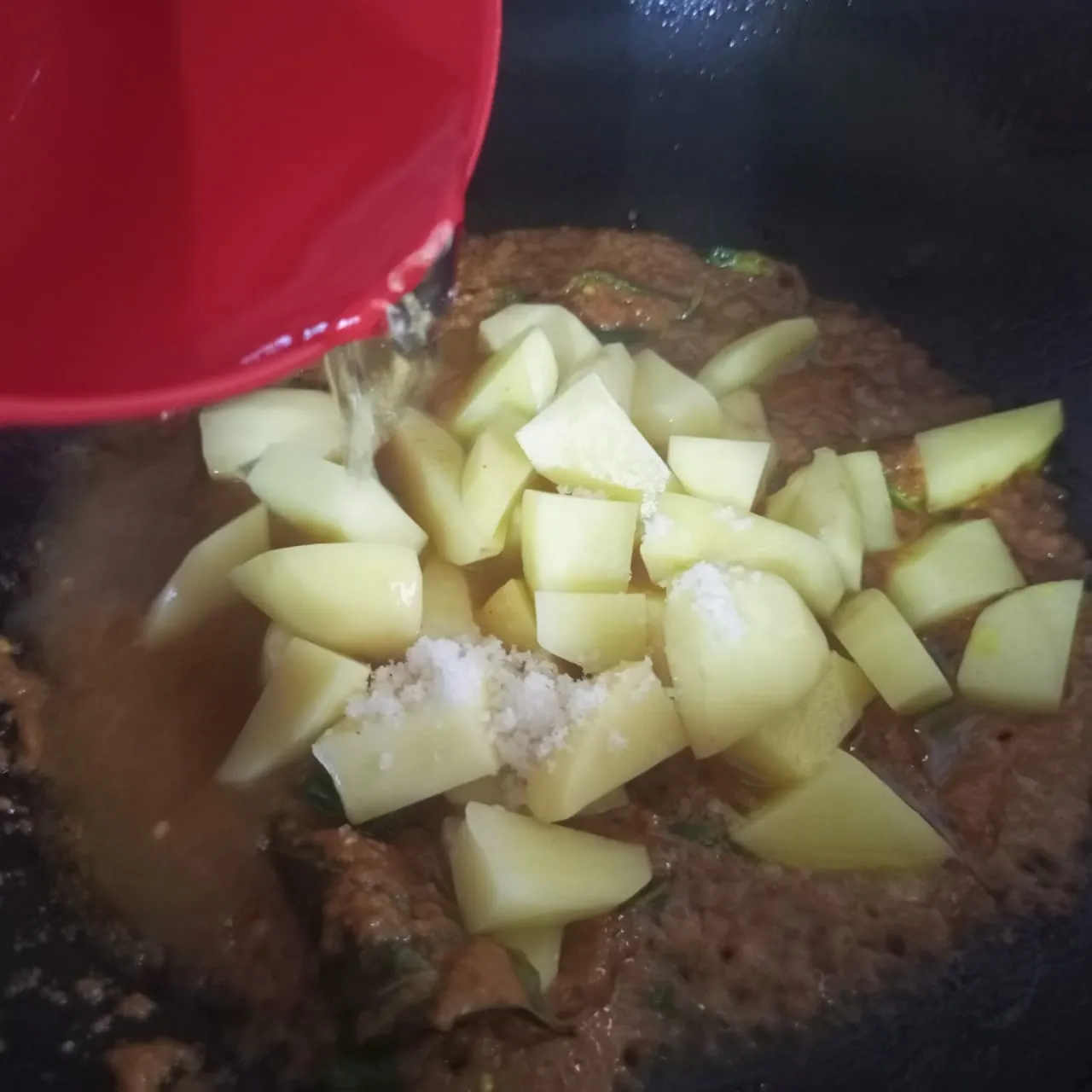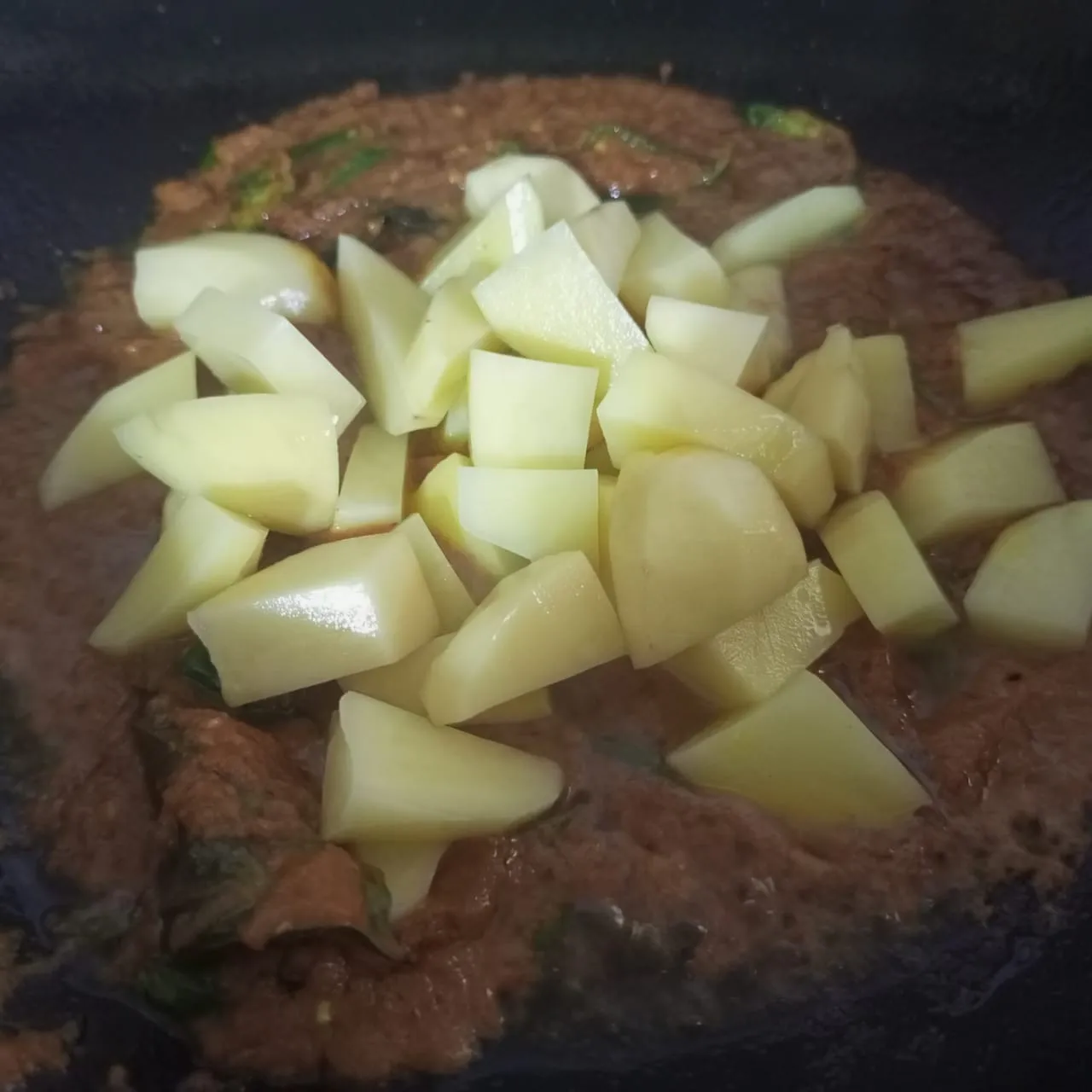 🔻 add water, stir well, wait until the potatoes are cooked and the sauce boils.