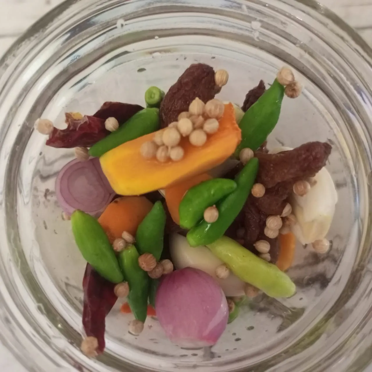 🔻Crush spices such as shallots, garlic, cayenne pepper, turmeric, sunti tamarind, coriander and curly chilies, wash thoroughly before mashing.