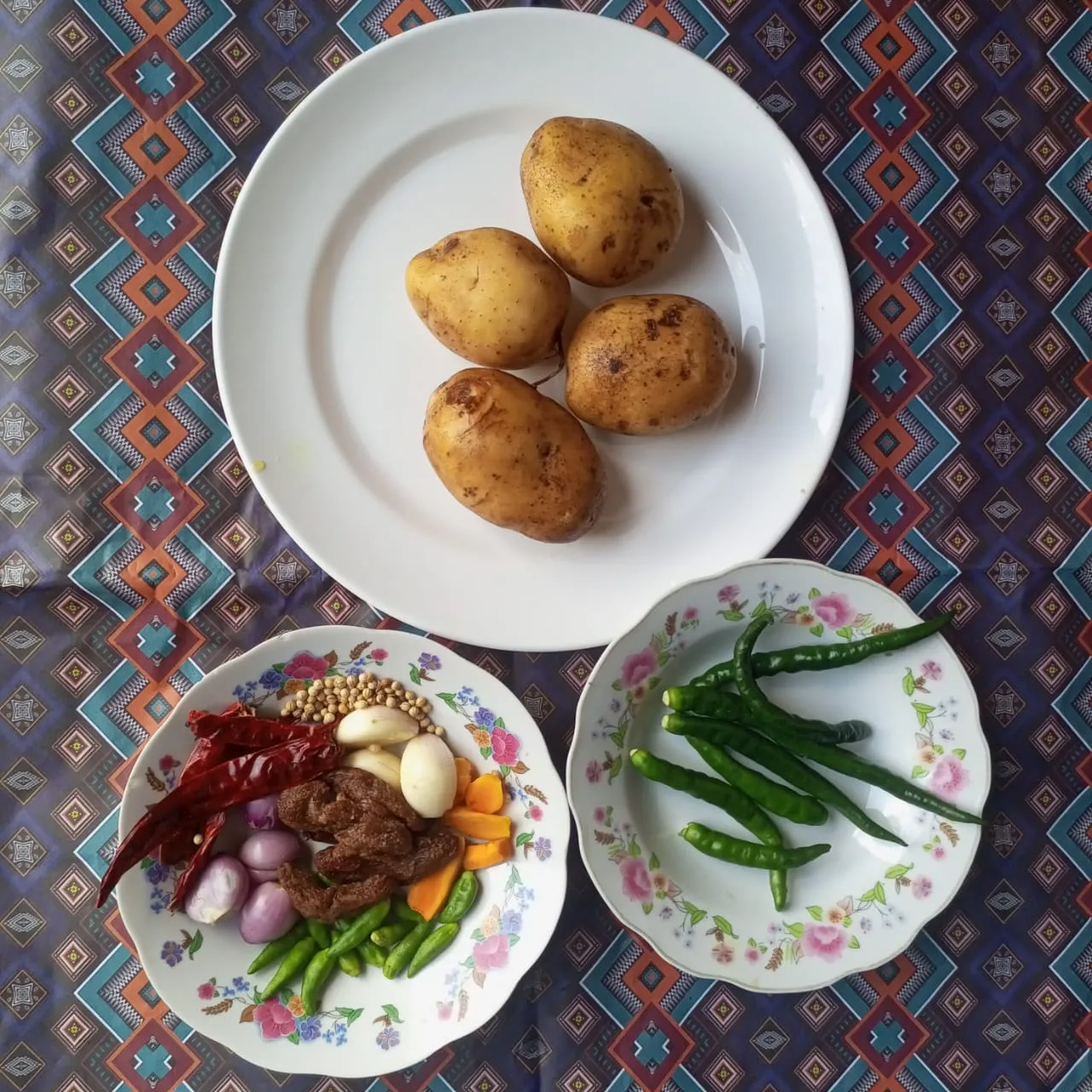 Good evening all friends, see me again @yulia-hive, it's been a long time since I greeted all my friends in this beloved community because I'm busy this week, I hope all my friends in this community are always healthy and able to do their activities. well, every day, this meeting I will present a different recipe than usual, namely the typical Acehnese dish stir-fried sunti sour potatoes.