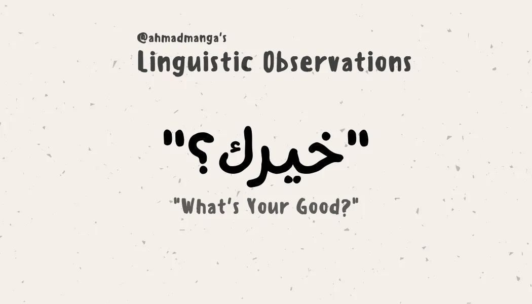 In Libya, we often say this one-word question "خيرك؟" and I thought it would be fun to talk about it here...