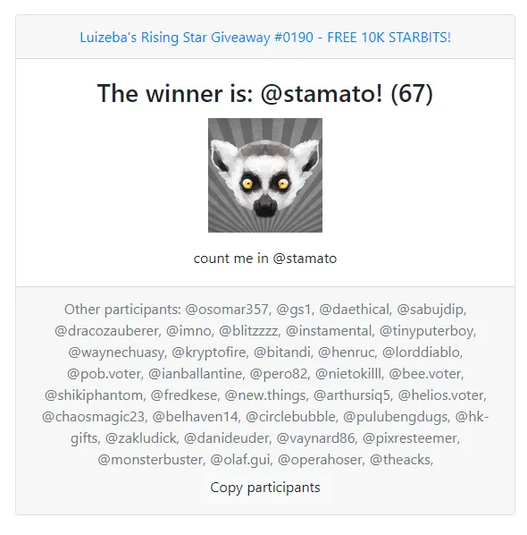 Luizeba's Rising Star Giveaway #0191 - 🤑FREE 10K STARBITS🤑 for You!