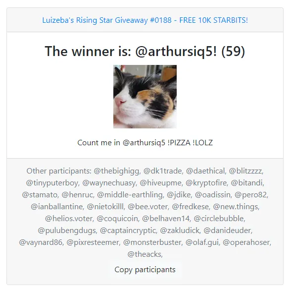 I will be using https://hivetools.up.railway.app/picker/ to randomly choose the winner. The tool will be used with the "Exclude Bots" option.
