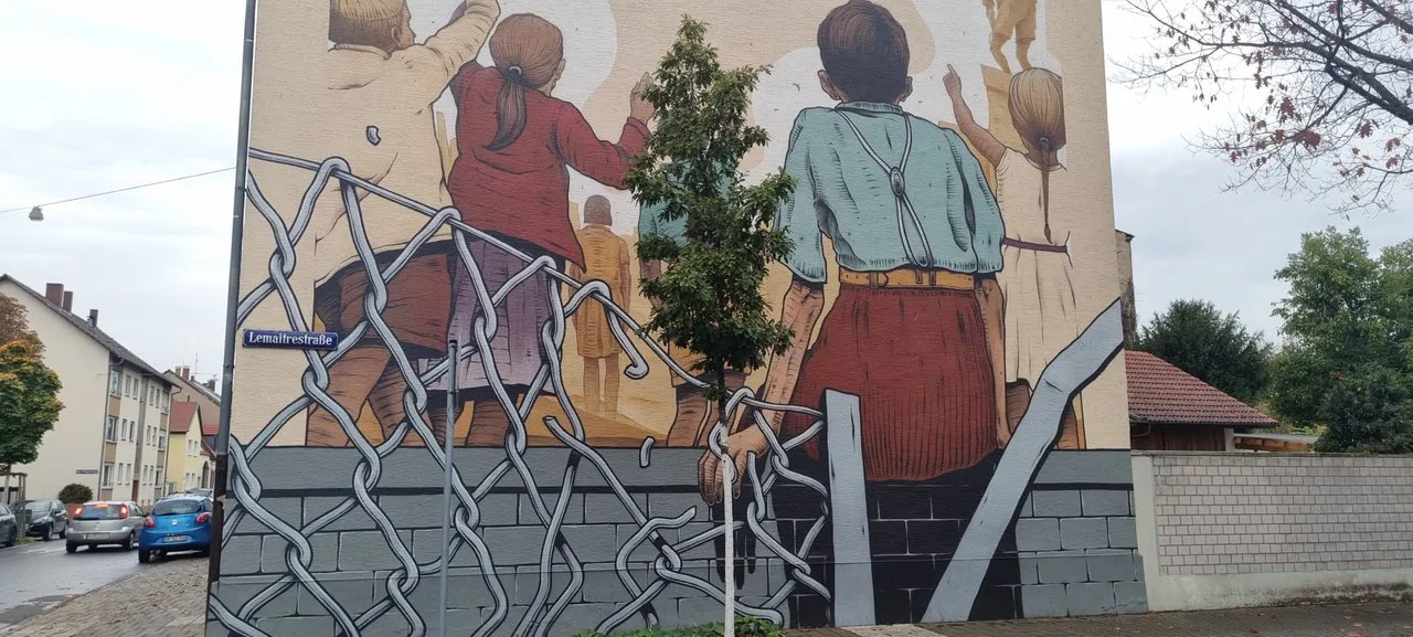 In Mannheim right next to a children's home is this house with this mural. This mural shows how children free themselves from captivity and go to freedom, see a hot air balloon in the sky that is free of everything and can determine for himself where he wants to fly. One can understand this ambiguously, the one as domestic violence to children (child is mistreated by parents) and we freed from it or children the injustice of their parents was taken and are guarded there in the children's home.... like my child. My child was taken from us, actually he did not want to do anything bad but he wanted to take revenge on the mom because she scolded him. He said to his caregiver that the mom beats him, that she is then also insulted by the caregiver that you do not do such a thing. But unfortunately in vain, he and we did not expect the next day that the Youth Welfare Office has taken him away and this is now after research. We hope that he quickly comes back out and is with us again at home. So dear Hiver and Hiverin looks after your children on you that does not happen. Our children are our everything. With this I apply to the CCC's Street Art Contest #114 , that you can see when something wrong happens or is misunderstood.