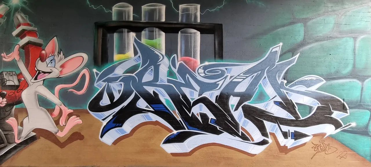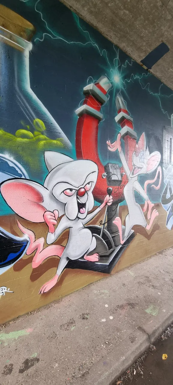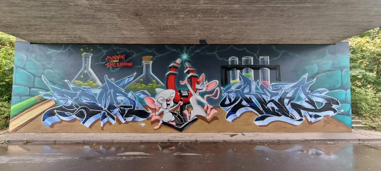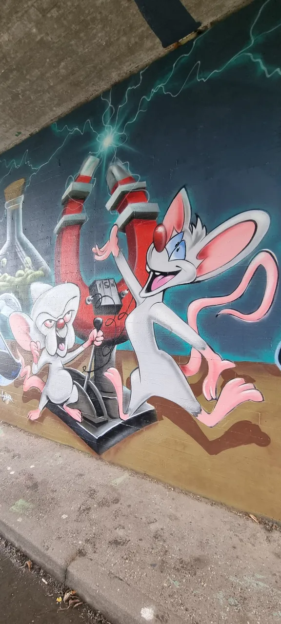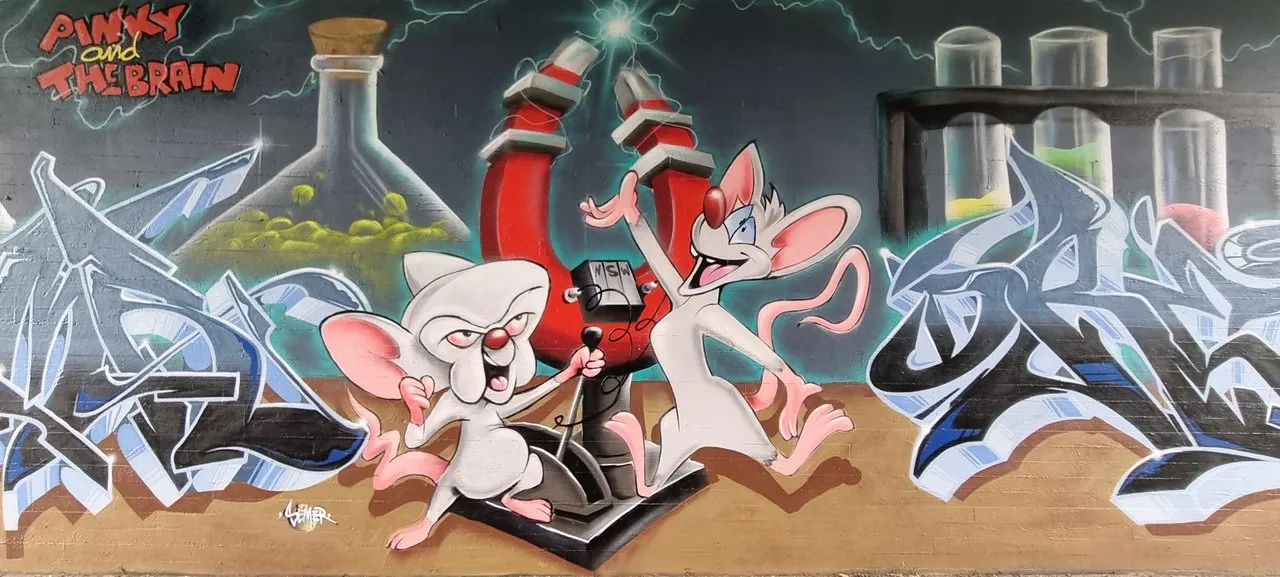 Jeder hat es schon gehört " Pinky: Hey Brain, was wollen wir denn diesen Abend machen? Brain: Genau dasselbe wie jeden Abend, Pinky, wir versuchen die Weltherrschaft an uns zu reißen. " und sofort hat jeder einen Ohrwurm vom Refrain. Ja hier geht es um den " Pinky und der Brain " erfunden hat sie " Steven Spielberg ", ja ihr habt richtig gelesen. Der E.T., Jurassic Park, der Weiße Hai, Poltergeist und und und Regie und Produzierte. 1995 erscheinte zum ersten mal " Pinky und der Brain " im Fernseh und endete 1998, Warner Bros. Television Animation hat sie in ihren Programm genommen und wurde so neben her Bekannt durch die Looney Tunes. Nun gibt es hier in Nussloch nähe Heidelberg ein Graffiti von ihnen, gesprayt haben es " Semer " und "DREAD " im diesem Jahr 2022.