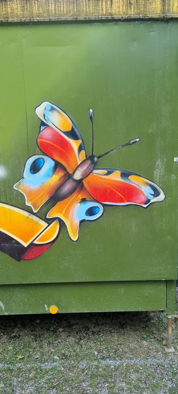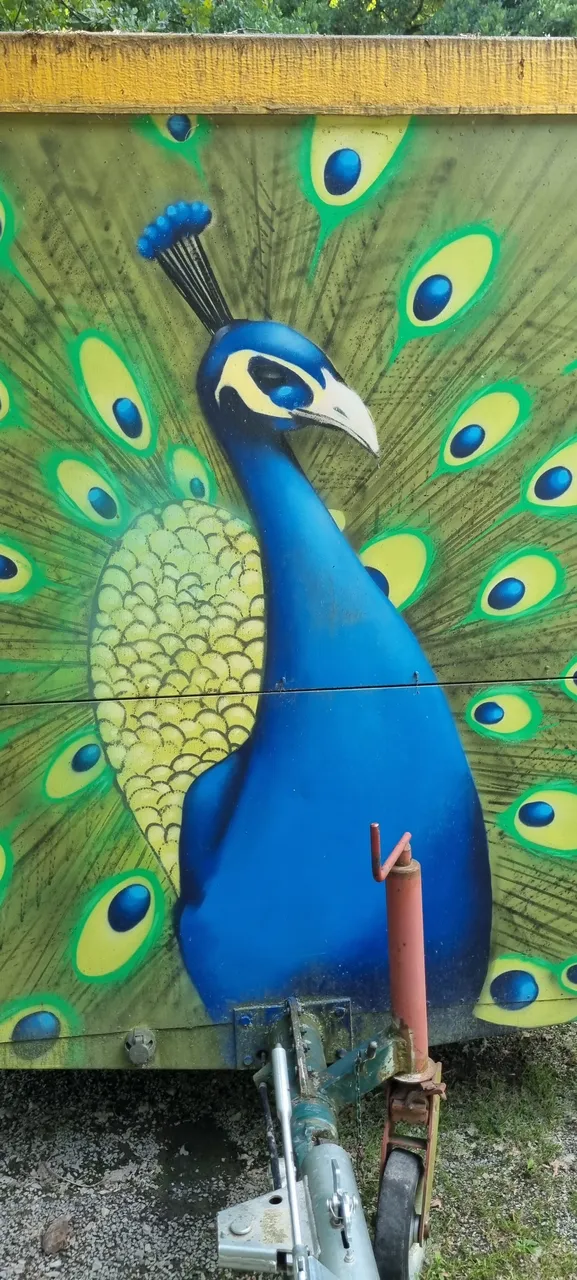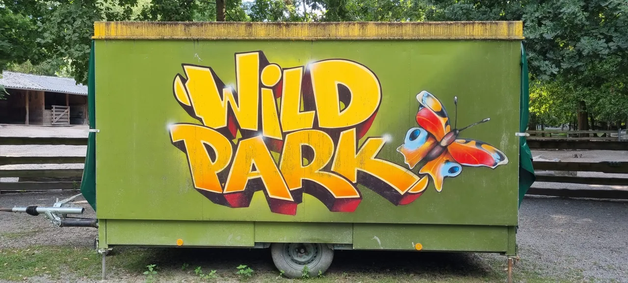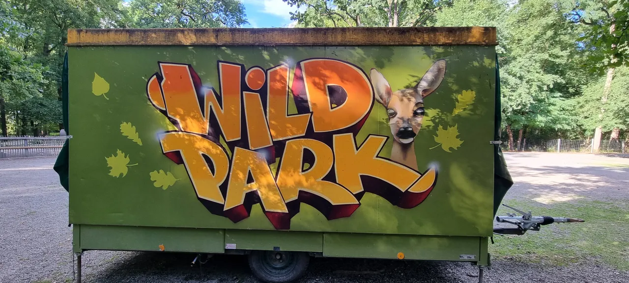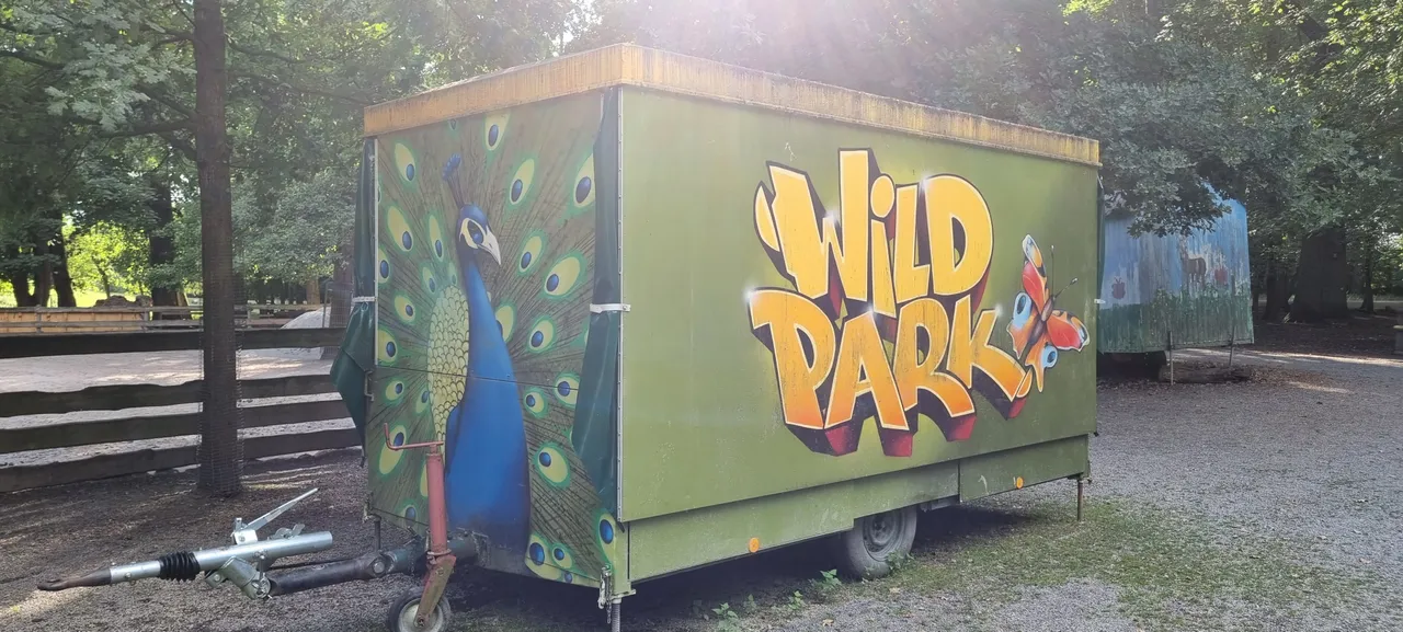In a small game park near Ludwigshafen in the Pfalz is this small trailer with beautiful animal motifs. On it were sprayed wild animals that you can meet in the wild such as the squirrel, fawn, butterfly and the peacock. But also other animals can be seen in this wild park that were not sprayed on this trailer on it, such as the lynx, the wild cat that is slowly increasing again with us in Germany to see.