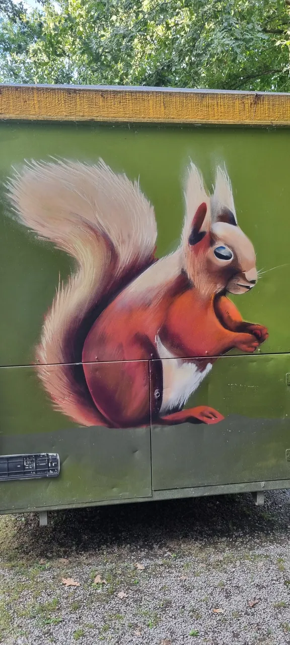 Im einen kleinen Wild Park nähe Ludwigshafen in der Pfalz befindet sich dieser kleine Anhänger mit schönen Tier Motiven. Darauf gesprayt wurden Wild Tiere die man in der Freie Natur antreffen kann wie zum Beispiel das Eichhörnchen, Rehkitz, Schmetterling und der Pfau. Aber auch andere Tiere sind im diesem Wild Park zu sehen die nicht auf diesem Anhänger drauf gesprayt wurden, wie zum beispiel den Luchs, die Wild Katze die langsam bei uns in Deutschland wieder vermehrt zu sehen ist.