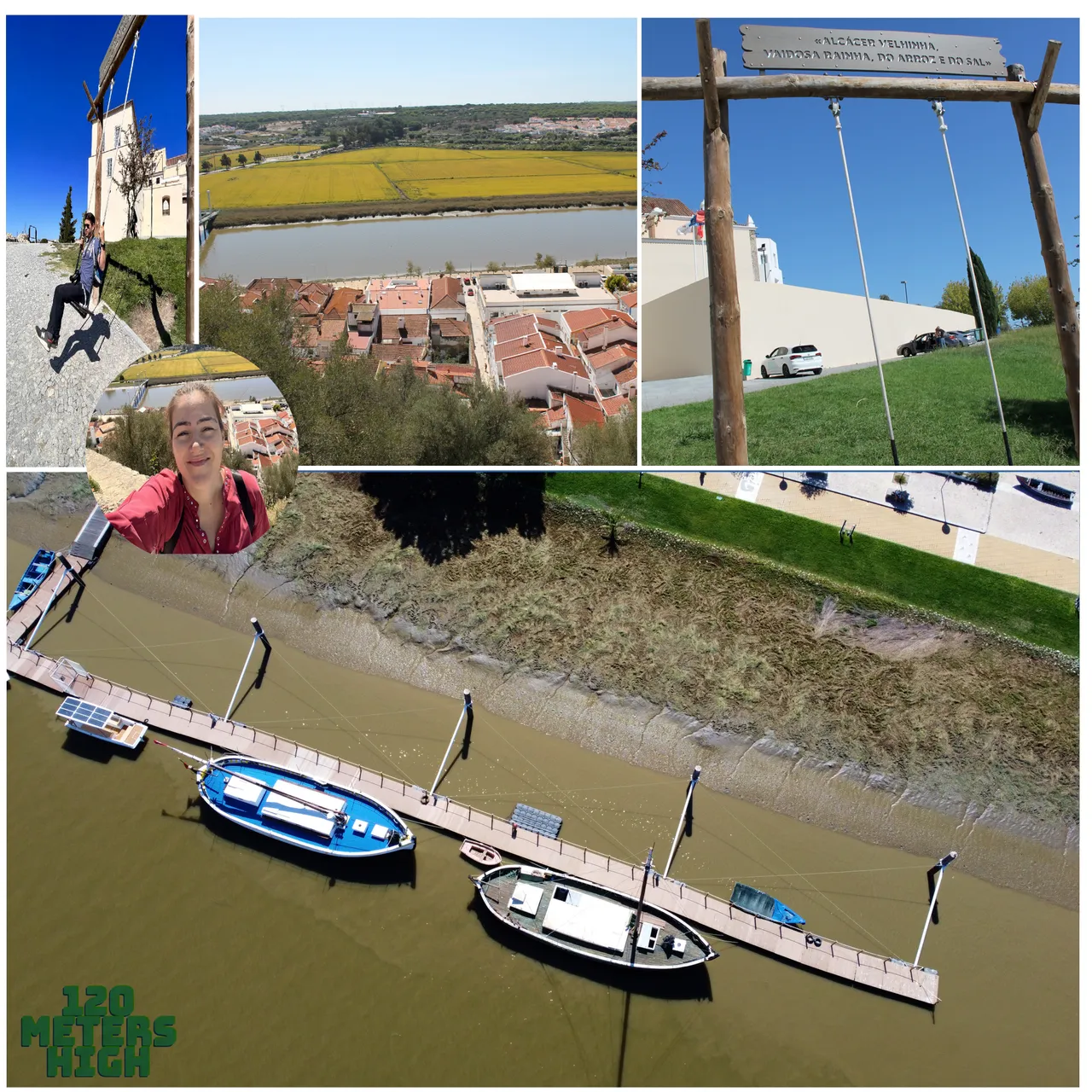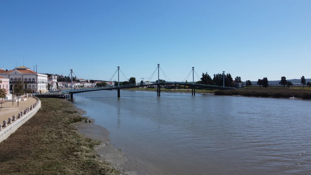 One of the main attractions of Alcacer, in addition to its old buildings, are its two modern bridges that cross the Sado River. These pedestrian bridges do not allow you to visit the entire city. I loved it. First, you don't have to ask for permission to fly the drone and everything is cheap. here and even the accommodation, the climate is quite hot👀