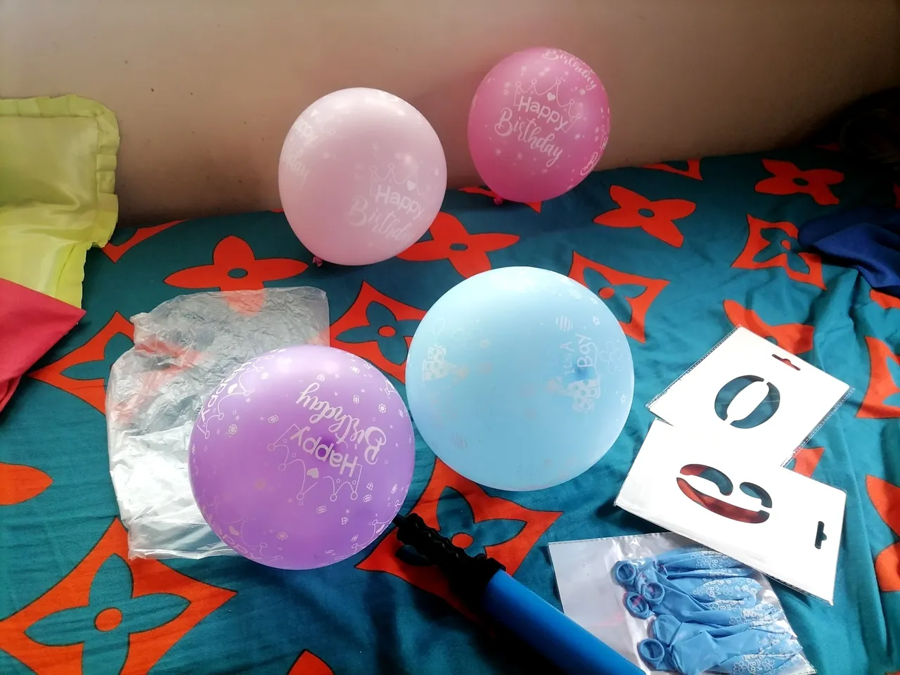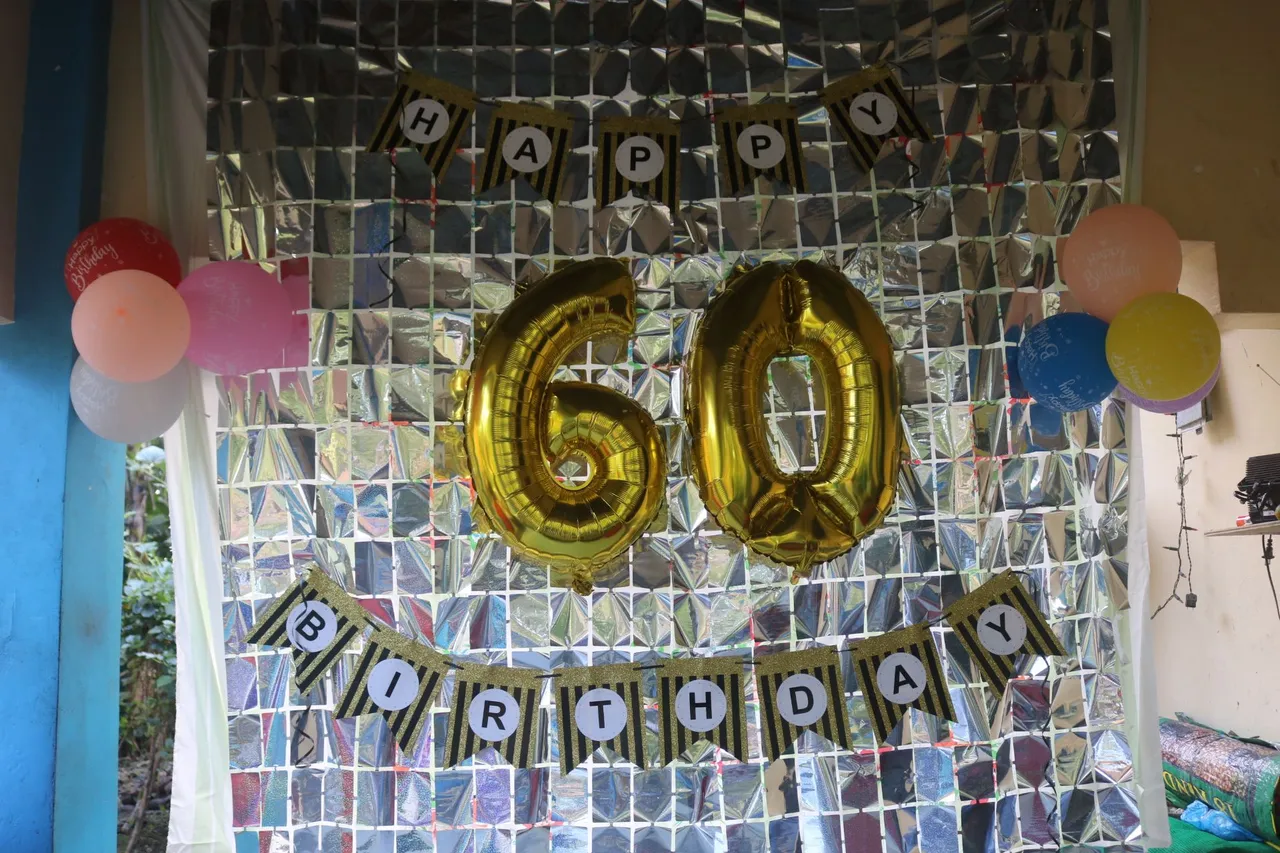 Early in the morning, together with my sister, we inflated the balloon to be placed in front of the table. A simple decoration will do for his birthday. After inflating, we put the sign "Happy Birthday" together with his age "60".
