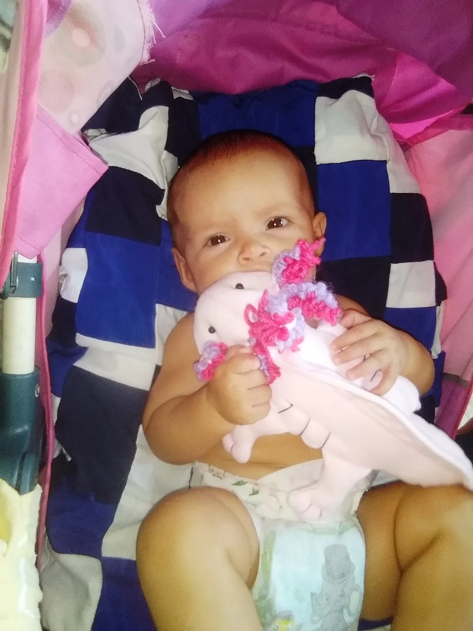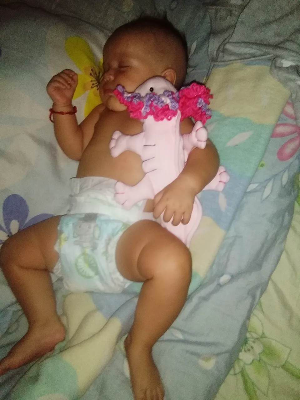 I feel happy because my baby got a lot of attention from this stuffed animal. I imagine it must be because of the shape and the colors. I hope that like her, you liked this beautiful work.