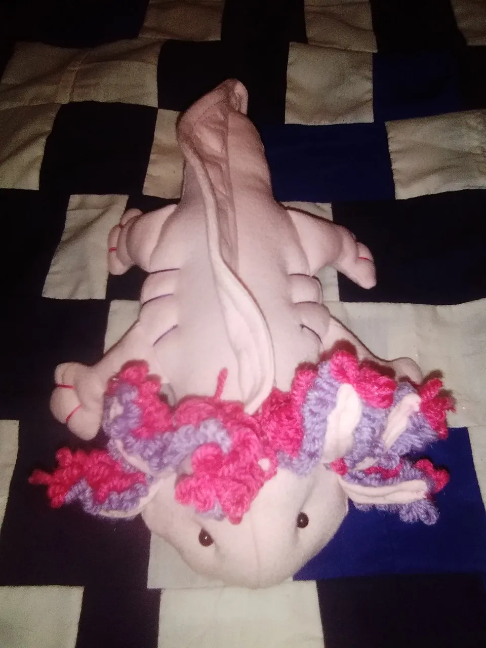 Among these creatures I saw a marine salamander that I found interesting. I don't like this kind of animal but when I looked at its colors I found it beautiful. My idea was to make it as a stuffed animal for my baby, since she is not old enough to play with other toys.