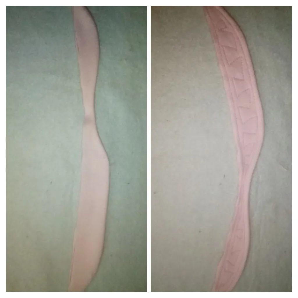 Haremos las branquias que irán en la cabeza, estas deben tener 3 tamaños diferentes. Cosemos en la orilla y volteamos.