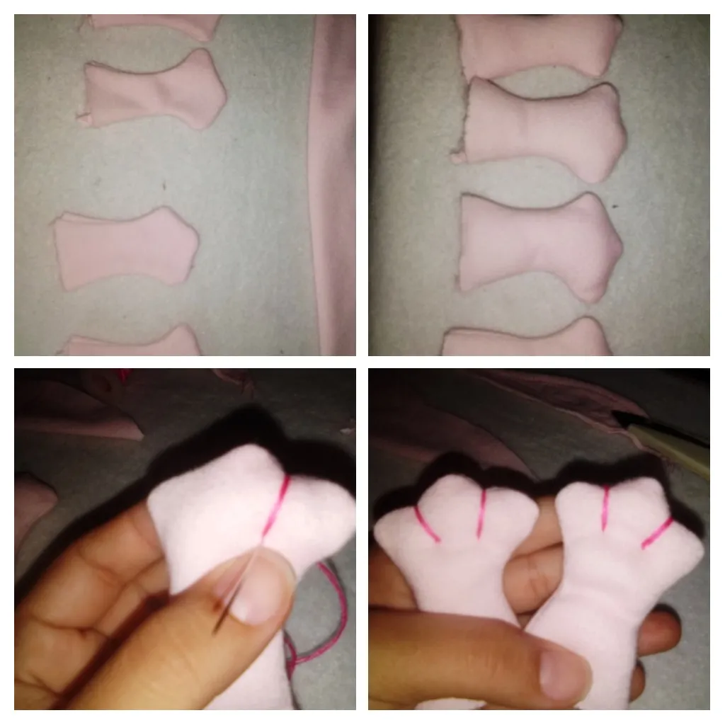Volteamos las patitas y rellenamos con la guata y con una aguja e hilo haremos la división de los dedos.