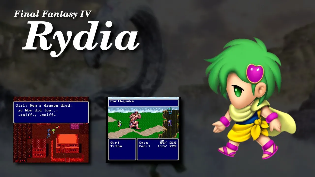 My favorite character of FFIV. The last summoner. She goes through so much but continues to be positive. She forgives Cecil who unwillingly destroyed her hometown & helps him overcome his past. Rydia is the heart of the group whenever she's around.