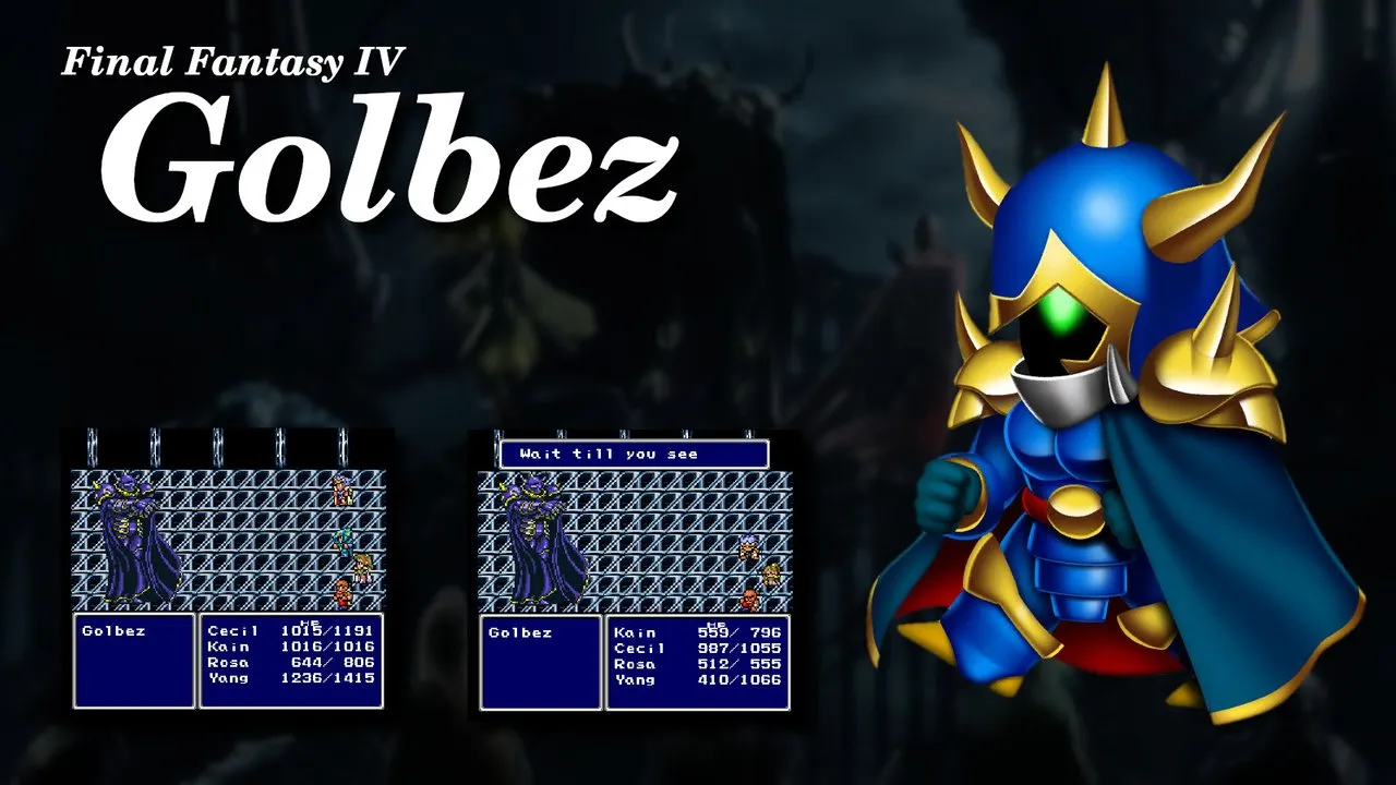 Golbez is one of the first complex antagonists in RPGs! He's the evil "conquer the world" character but also has a hidden side. He also survived the greatest spell: "Meteor."