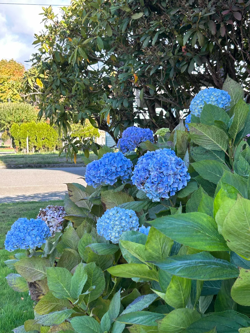 I found more hydrangea bushes that were still wearing their bright blue colors. The blue hydrangeas are so gorgeous to look at.