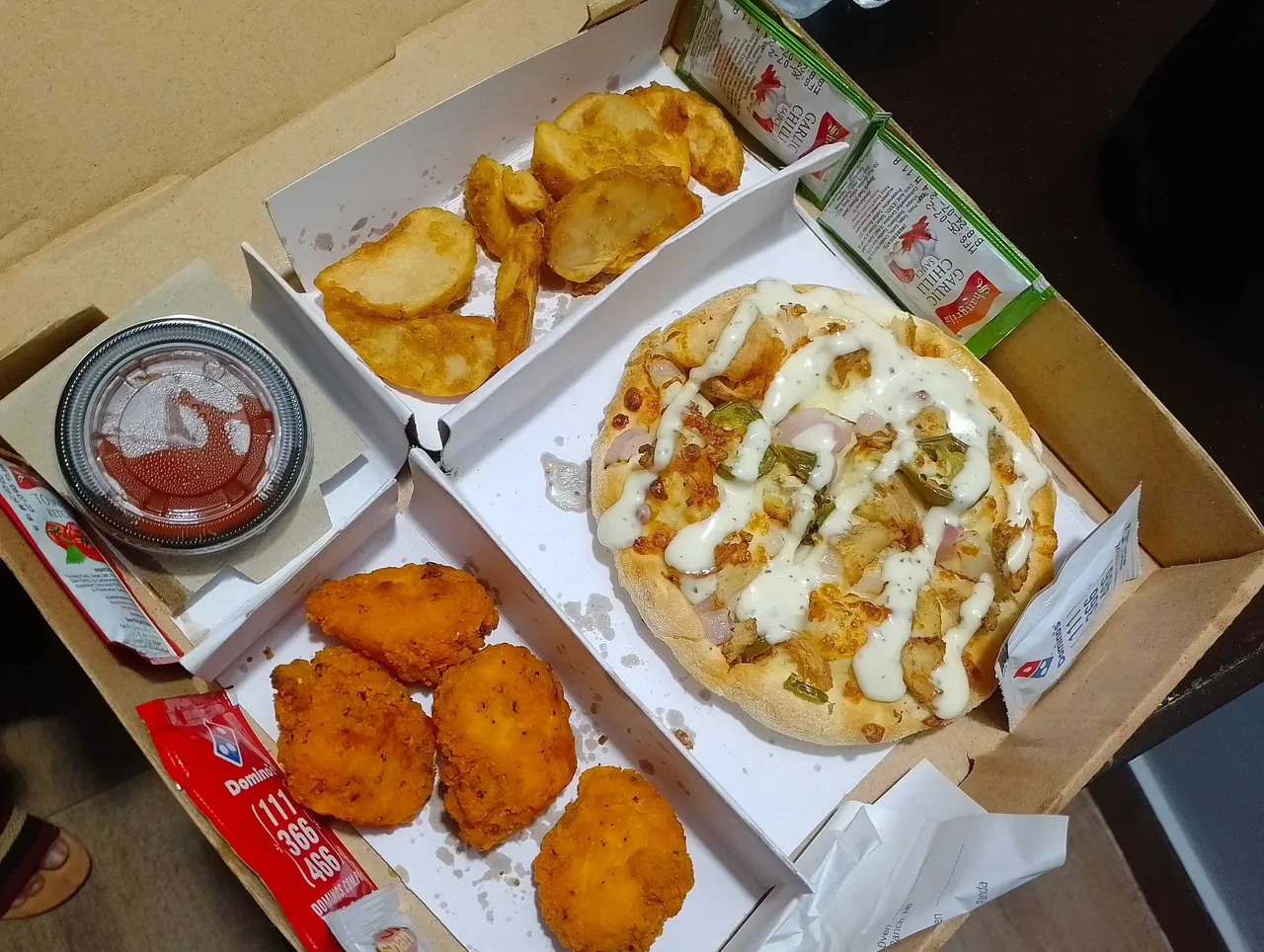 We have a 500 meter long yard in our garden. When I completed its three rounds, I decided to order a Pizza Deal from Foodpanda to surprise my mum in the morning. Today, hence I decided to order from a different brand of food stalls. In Lahore, I have heard many praises about Dominos Pizza from people that is why I dropped the Dominos Pizza deal order from the Foodpanda Application. They required thirty minutes, hence I can enjoy two more rounds. After thirty minutes, the outdoor ring rang by someone. I moved towards the gate and I was hopeful it will be a Dominos Delivery. When I opened the door, yes it was pizza boy and I found my morning food parcel 😂.
