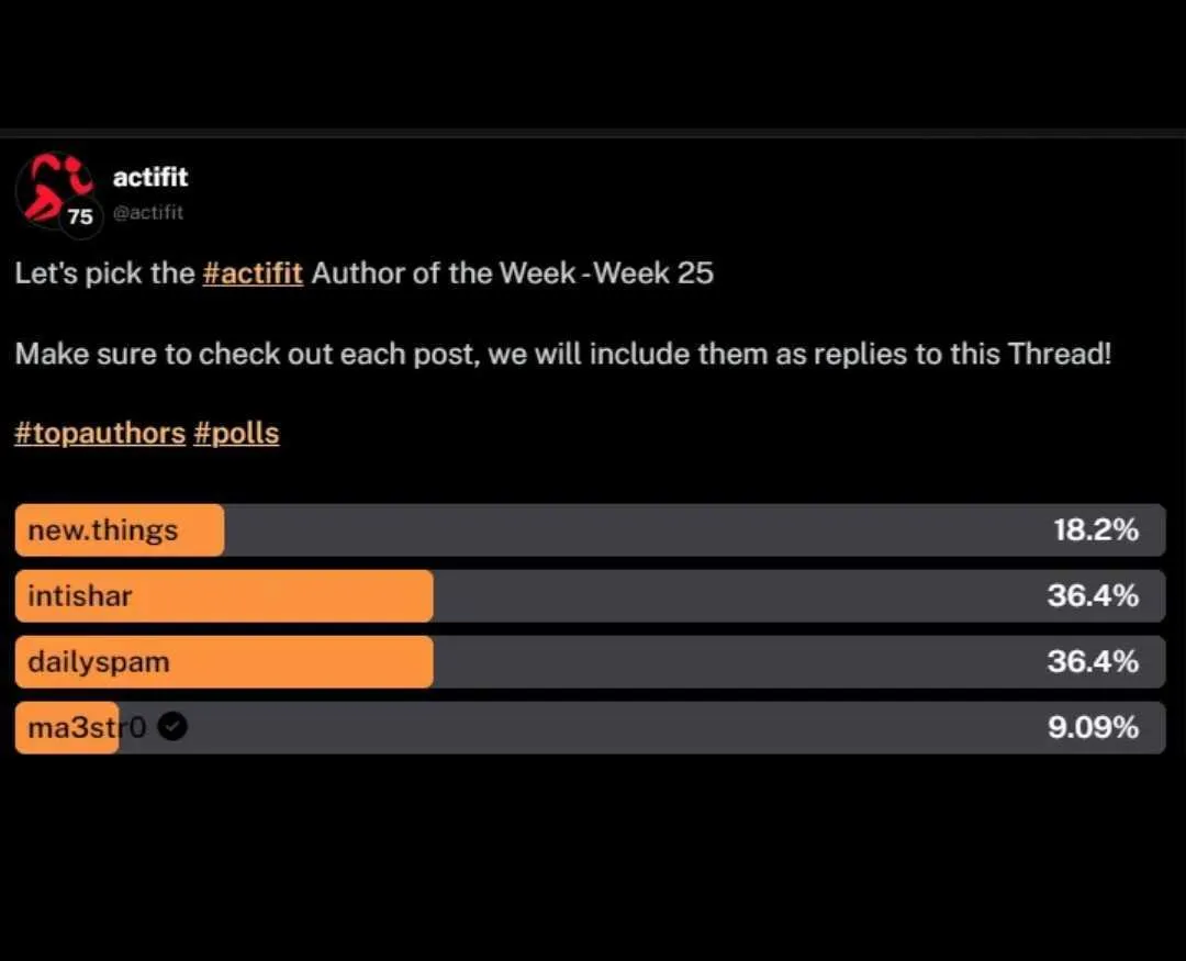 @intishar and me are actifitter of the week. Thanks to everybody who voted in the poll.