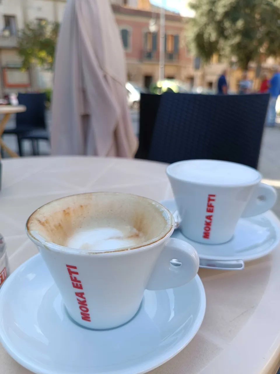 It's our ritual to start the day with a coffee in the next village with an open bar.