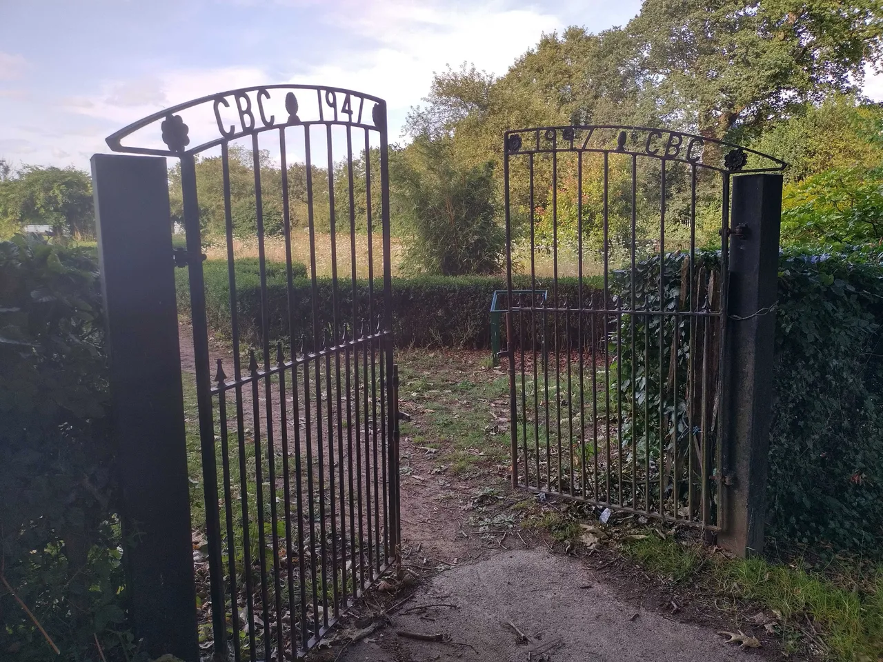 This park includes our town bowling club. There is a sad looking garden area with iron gates (main picture) with dates 1947 - 1997 CBC. I think this refers to the Crawley Bowling Club. The garden has clearly been neglected for many years and is badly overgrown with weeds.