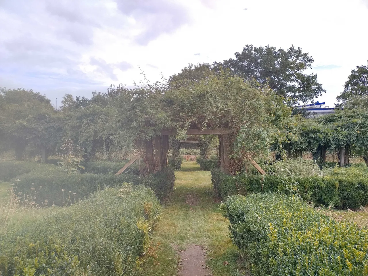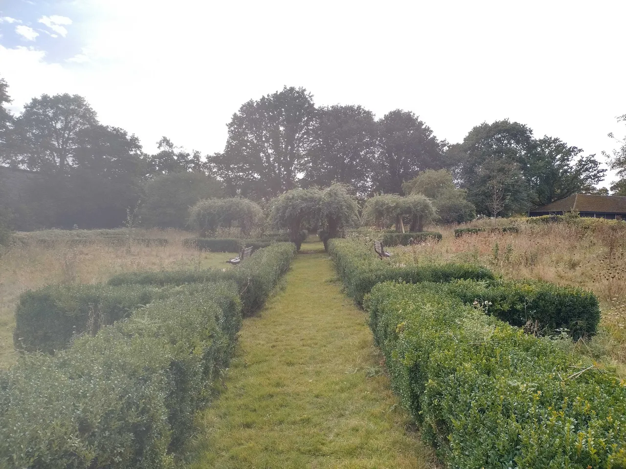 It looks like the hedges are trimmed occasionally but the flower beds are now grass and weed infested.