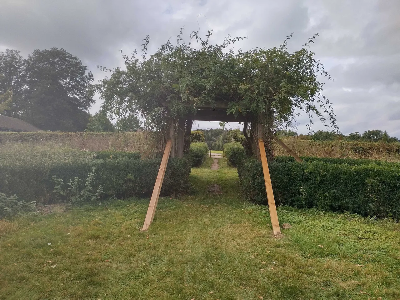 Parts of the wooden frames are beginning to fall over and have been propped up with makeshift buttresses.