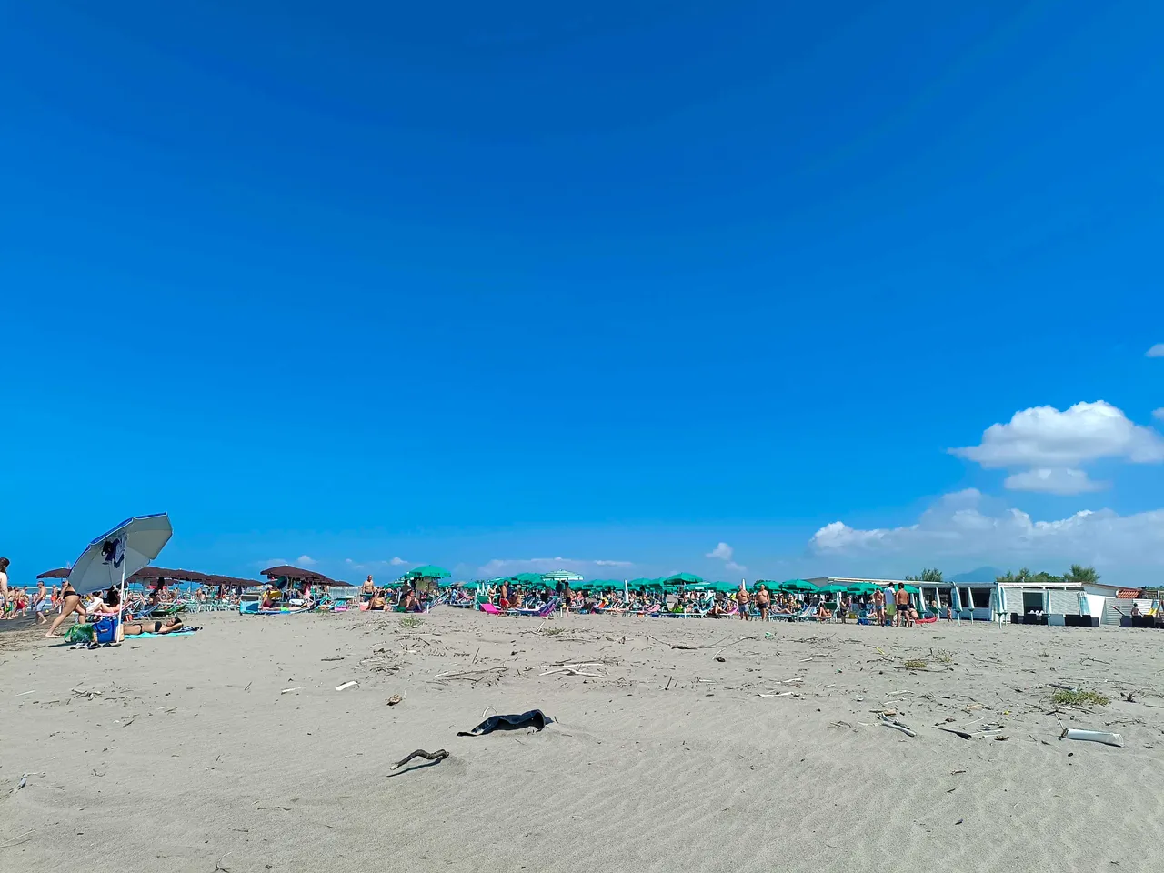 After breakfast and spending the morning with my family, I went down to the beach. At 10 am there was a long line of cars waiting for the entrance to the beach Lido San Pietro.