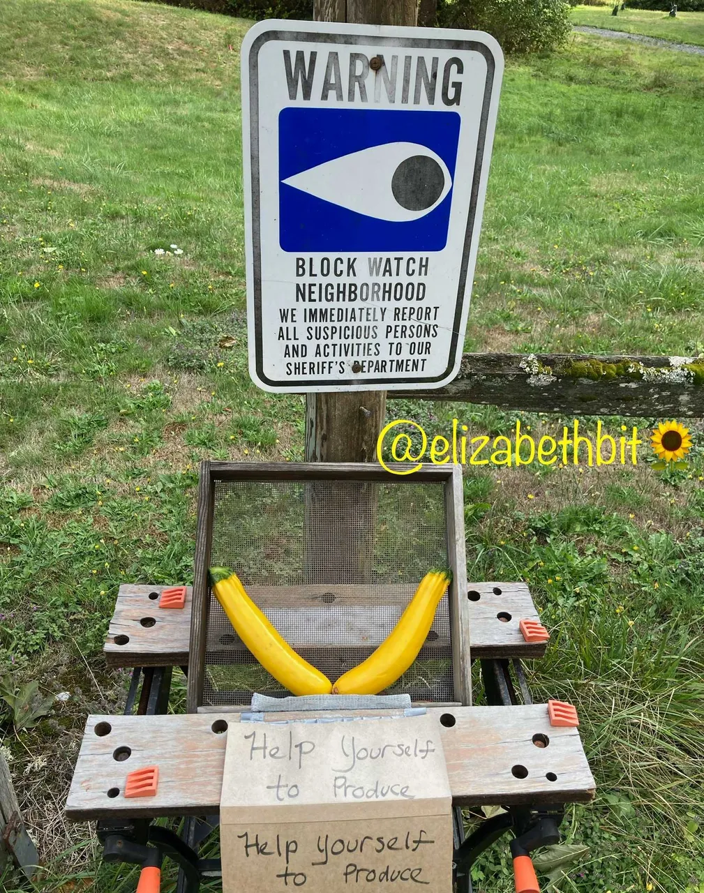 Who stole the squash? The neighborhood watch isn’t working so well as one of these 2 squash ended up on my kitchen counter while I was at work! @silvertop hasn’t been hauled off to jail yet, lol! 🤣 Our neighbors Keith and Lynne often leave produce for whoever is hiking, to help themselves to. It’s just funny the produce stand is in front of the sign. 😎