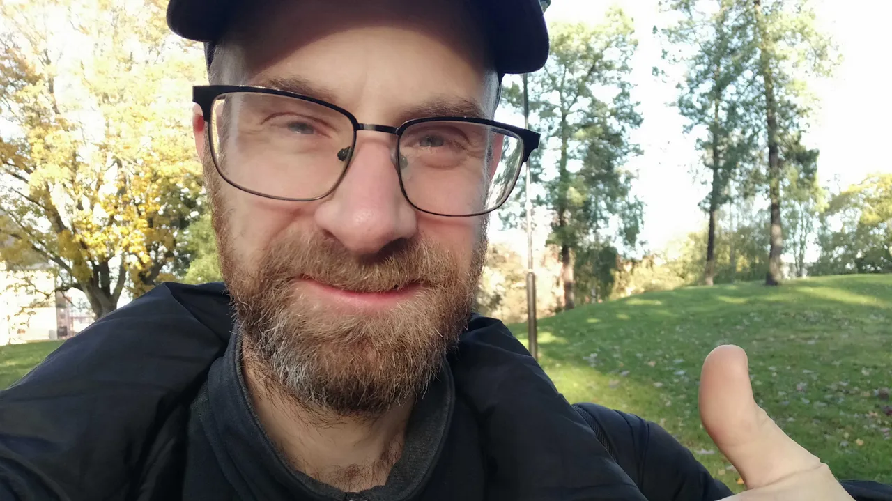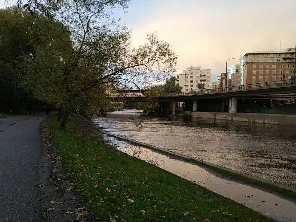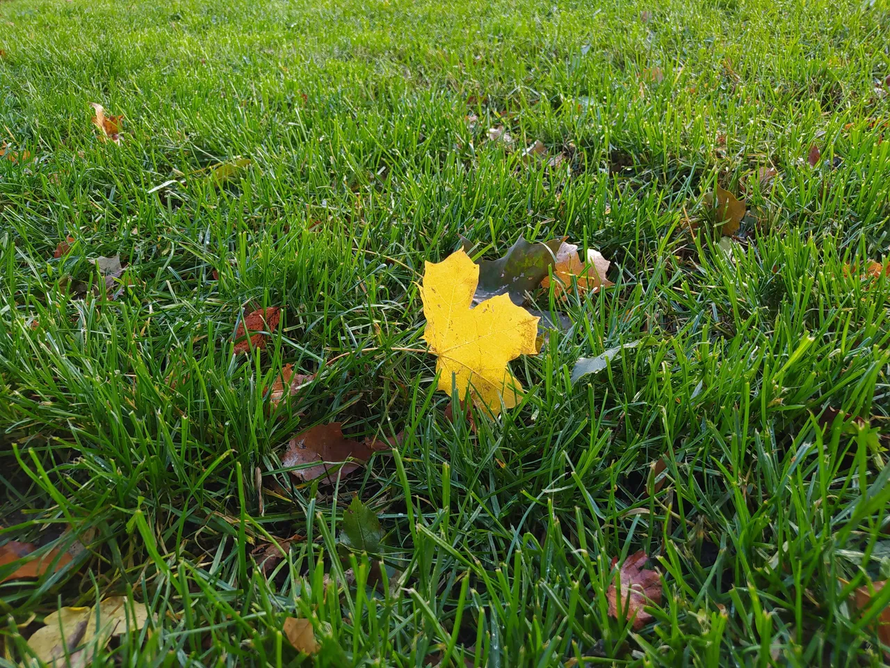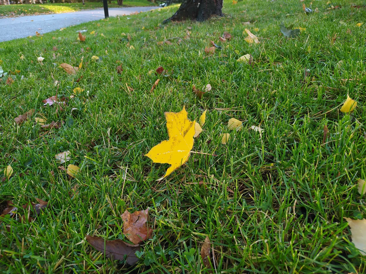 Above you see some fallen maple leaves in fall colors from the park, and the picture below was taken a bit later and of the Kungsholmen Church and just before it started raining a second time.