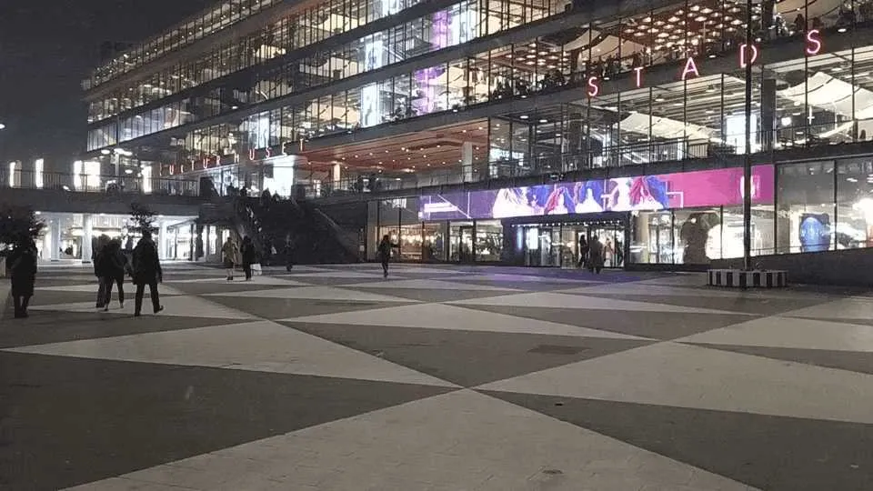 I also took a short video and made it into a gif showing a few snowflakes falling at the Sergel Plaza in the evening.